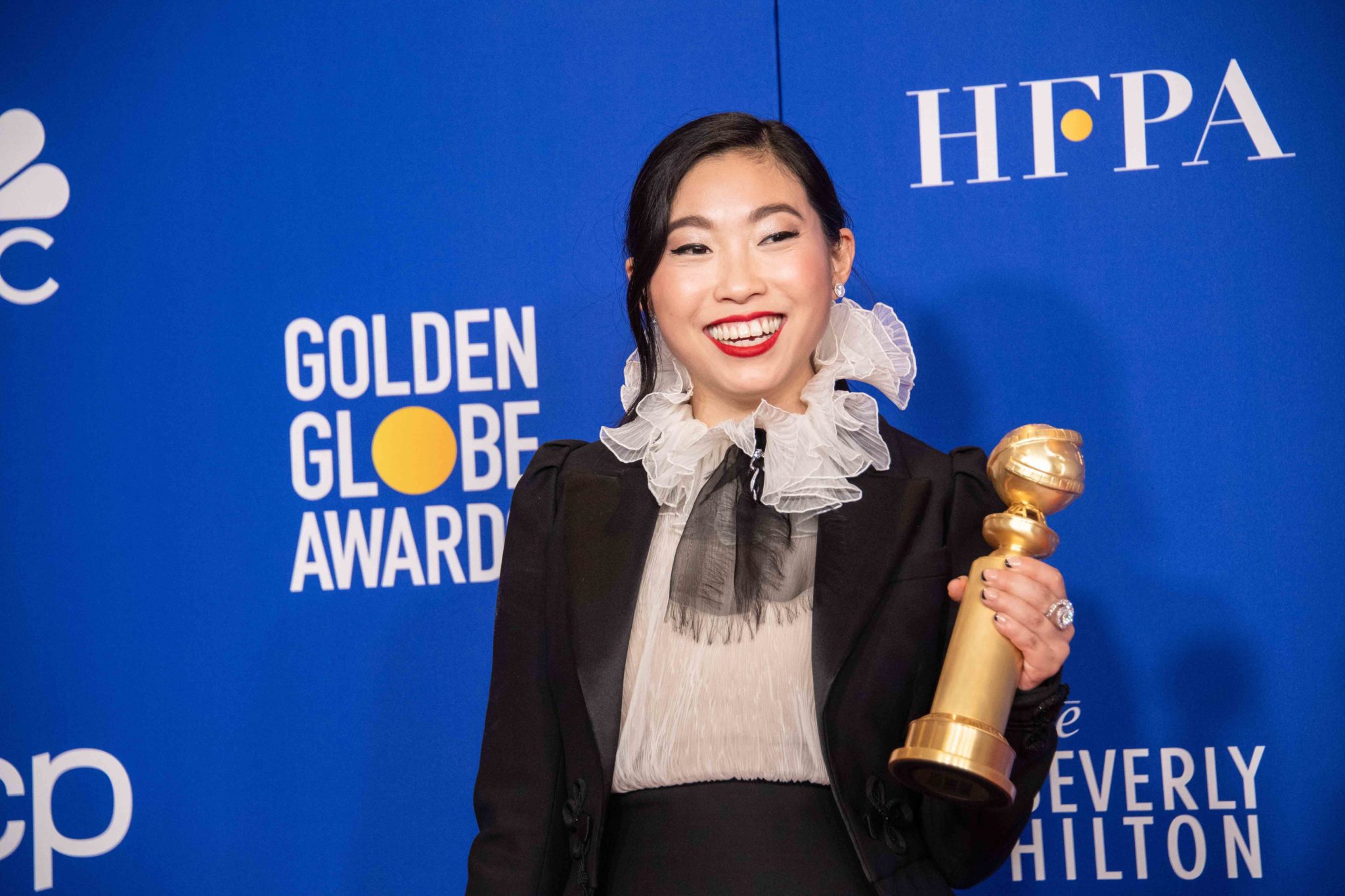 After winning the category of Best Performance by an Actress in a Motion Picture – Musical or Comedy for her role in “The Farewell,” Awkwafina poses backstage in the press room with the Golden Globe Award at the 77th Annual Golden Globe Awards at the Beverly Hilton in Beverly Hills, CA on Sunday, January 5, 2020.