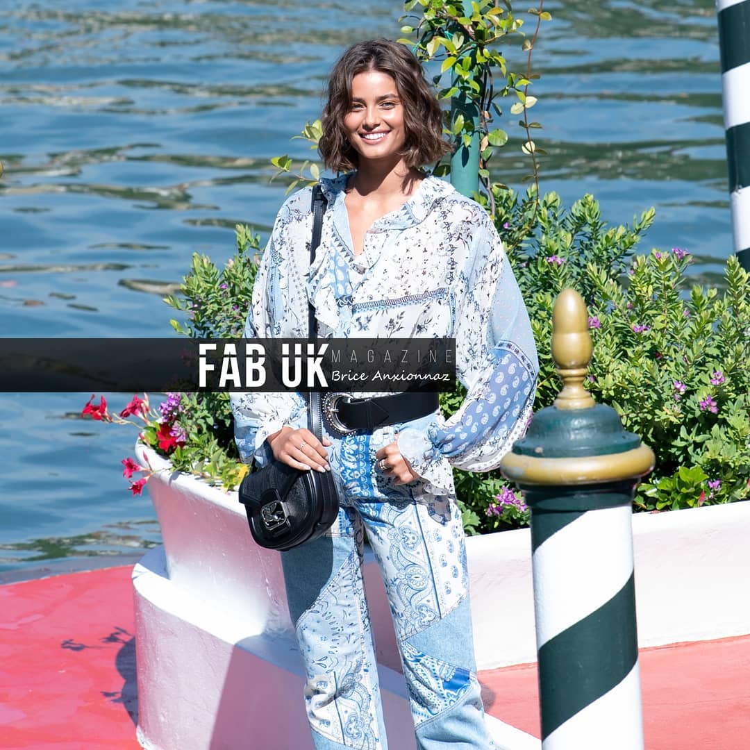 Victoria’s Secret model Taylor Hill also walked the red carpet in an outfit that appeared to look like a bathrobe. Hill also attended the screening of ‘Lovers’ in an Etro design made of blue velvet and worn scantily down to her waistline – but the look was saved by a Chopard blue choker and matching ring with beautifully slicked back hair and bold, blue-and-black eye makeup.