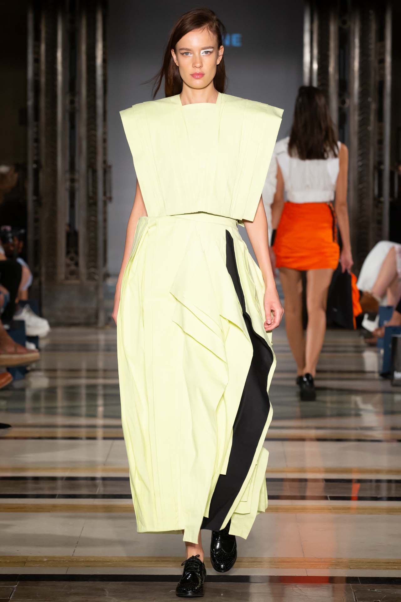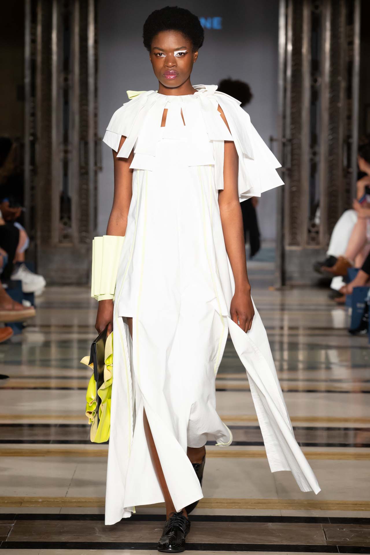 A-JANE SS19 is a study of the aesthetics behind “repetition”; a journey taking us to “there is no repetition”. This collection is called “Repetition?”. It is about exploring conflicts between the norm and the new; to discover that there is no repetition even when it appears to be repeating since it keeps repeating itself in all possible ways. You may find various calculations in proportions that are practised in the “no repetition” concept. SS19 Repetitions? is the play of volumes in space, clashing colours and strong modern art form, but still RTW.