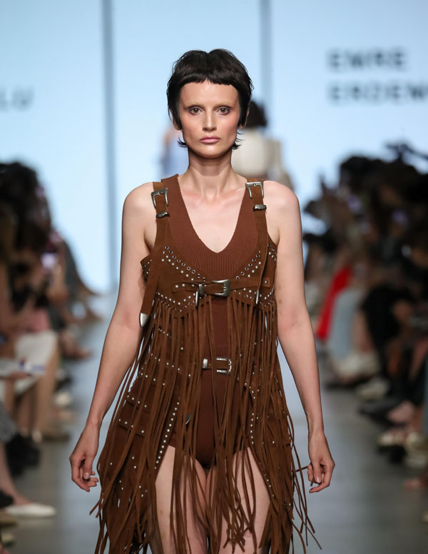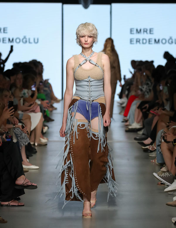 Turkish fashion designer Emre Erdemoğlu presented an unforgettable show with his 2027 Autumn/Winter collection, “West of Eden.” Inspired by the overlooked cowgirl figure of American Western culture, the collection reflected a revolution of women who write their own rules of freedom and courage.
