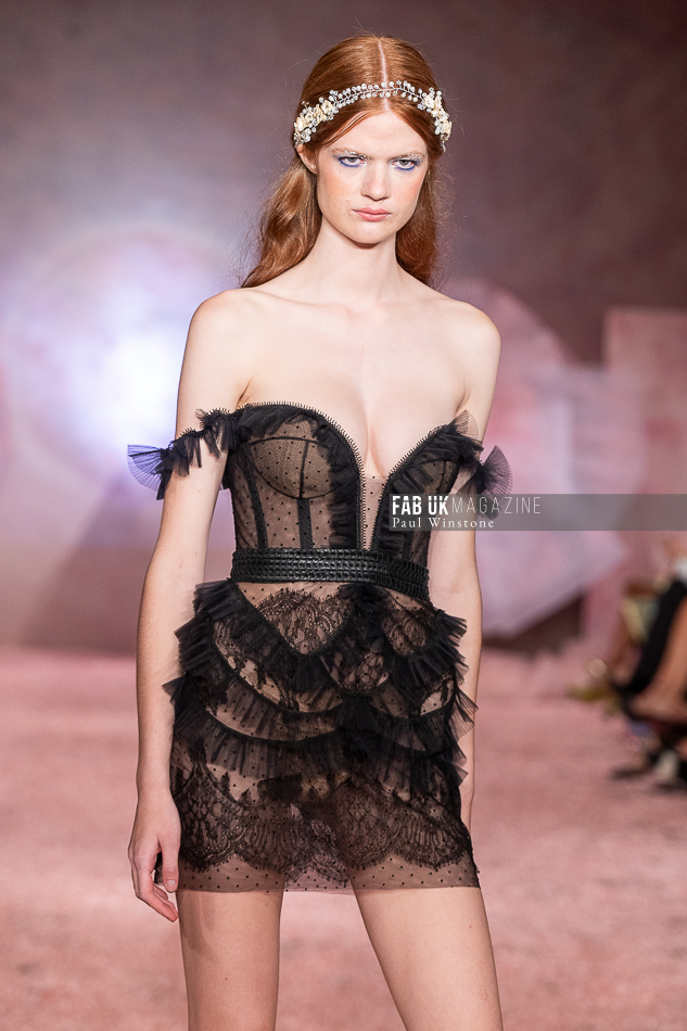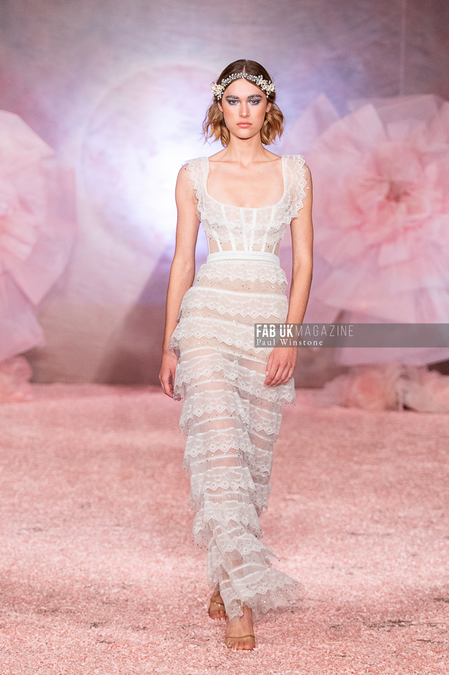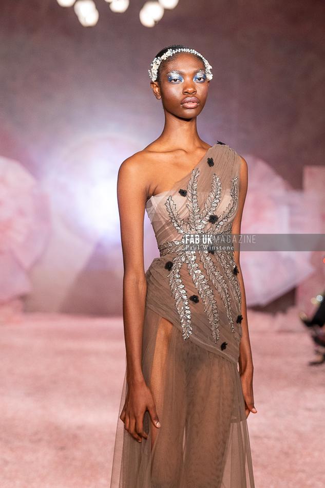 Aadnevik’s refined craftsmanship was on full display as ethereal fabrics and intricate details came together in an enchanting color palette, blending lightness with opulence. From shimmering silks to delicate French lace, each piece exuded royal charm, while playful touches like soft layering resonated with a younger, more vibrant audience.