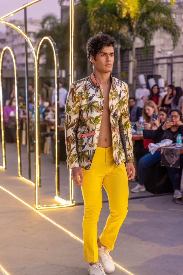 This resort wear collection is all about vibrancy and joy post-pandemic…and is showcased in a unique and vibrant sundowner concept with a collaboration with India’s biggest rap band Underground Authority playing live during the show. the band features MTV hustle and India’s got talent famed EPR as a lead rapper.