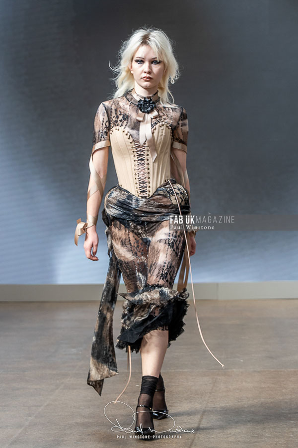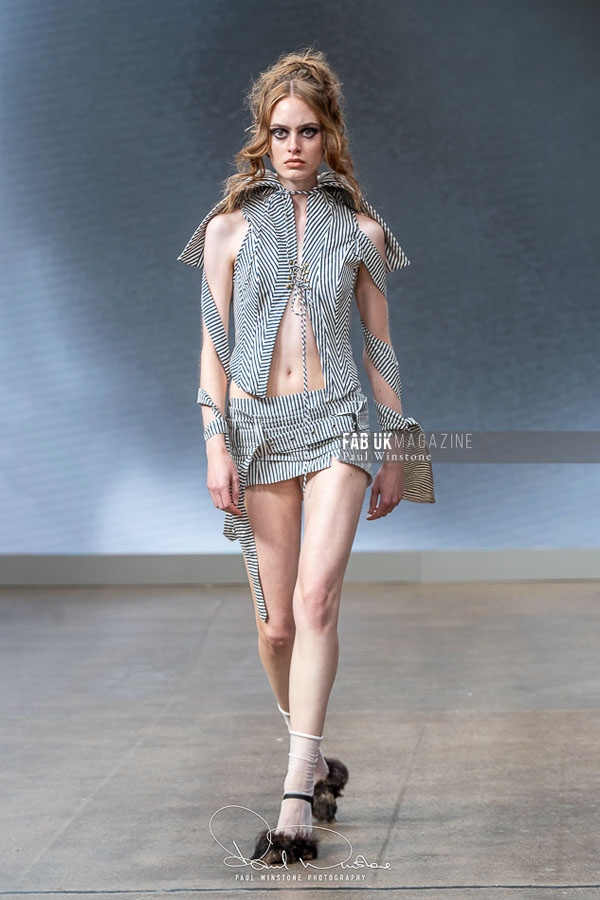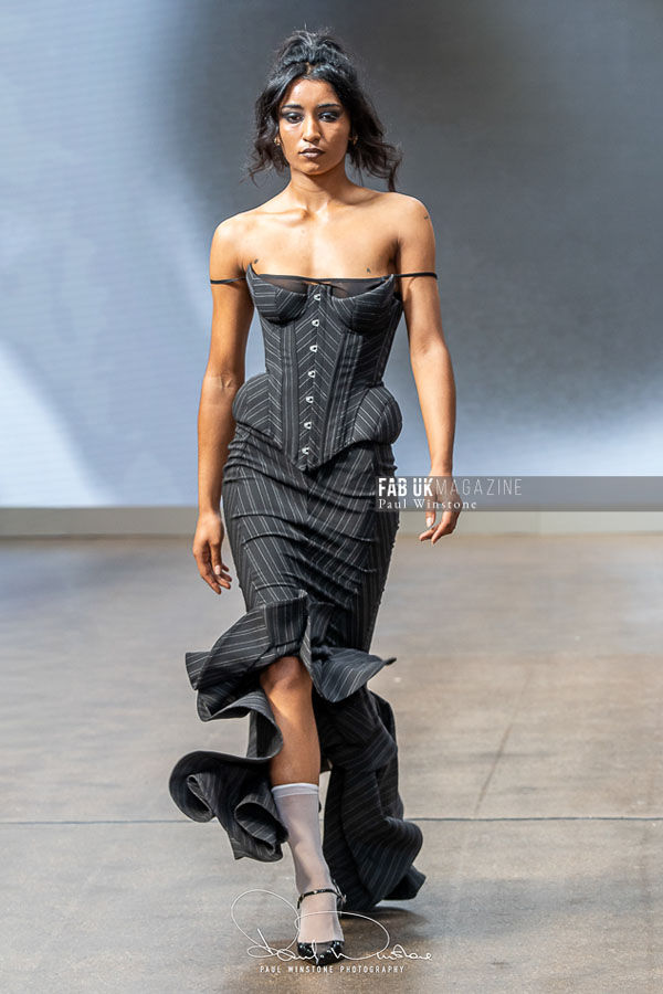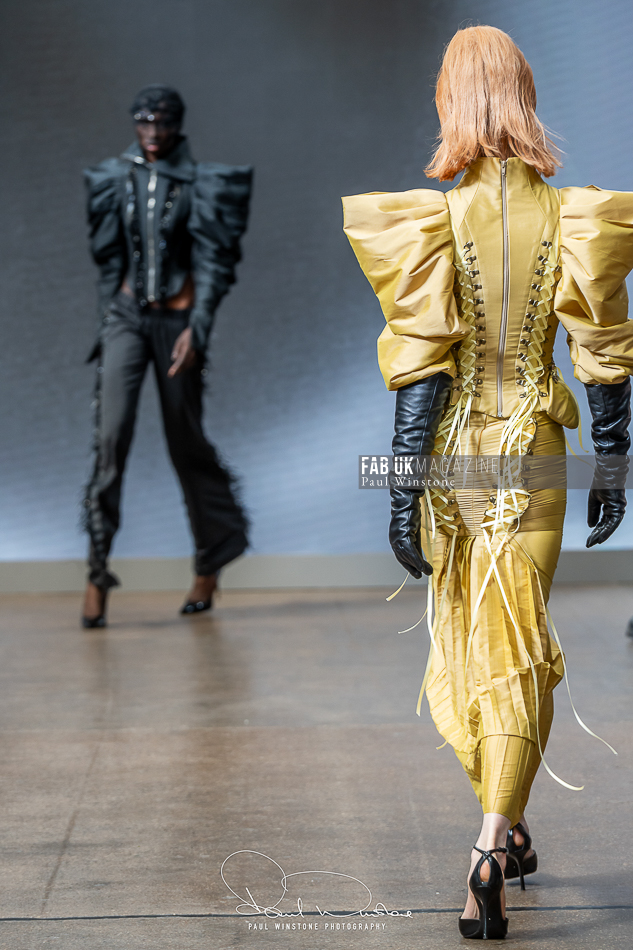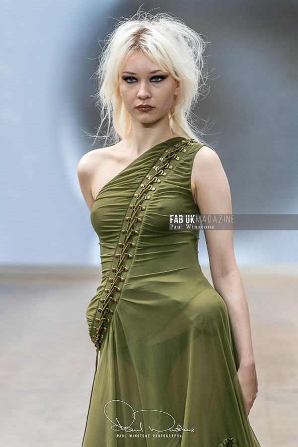 The show was brought to life with makeup by Mandy Gakhal for AOFMPro using Dermalogica UK, hair by Diego Miranda at BTS Talent, and expert production led by Martyn Roberts and the Fashion Scout team. The meticulous styling and atmospheric presentation underscored AGRO Studio’s commitment to blending artistry with edge.