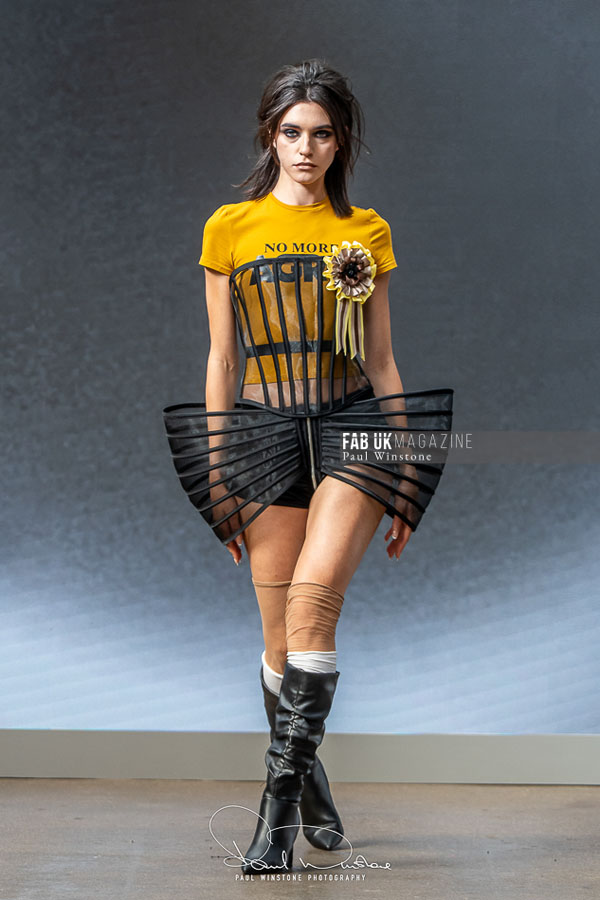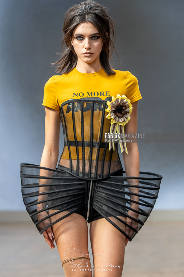 The show was brought to life with makeup by Mandy Gakhal for AOFMPro using Dermalogica UK, hair by Diego Miranda at BTS Talent, and expert production led by Martyn Roberts and the Fashion Scout team. The meticulous styling and atmospheric presentation underscored AGRO Studio’s commitment to blending artistry with edge.