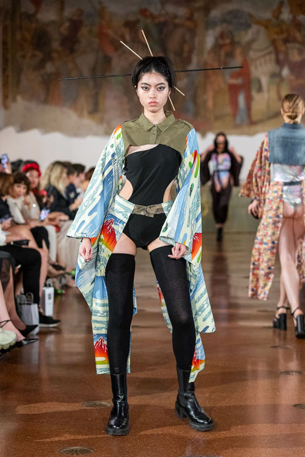 I do not yet consider myself someone who can influence the fashion industry, but I aspire to impact Japan and Japanese culture. To start, many Japanese people perceive overseas as “distant,” and they view adjustment to foreign cultures as akin to “grasping a cloud.” I will continue to demonstrate that “the world isn’t that far away” through my many challenges. I want to convey the “aesthetics of destruction” in kimono culture, which often seeks to preserve the old. If I have a question for the world or the industry, it concerns the legitimacy of “official” events like Fashion Week.