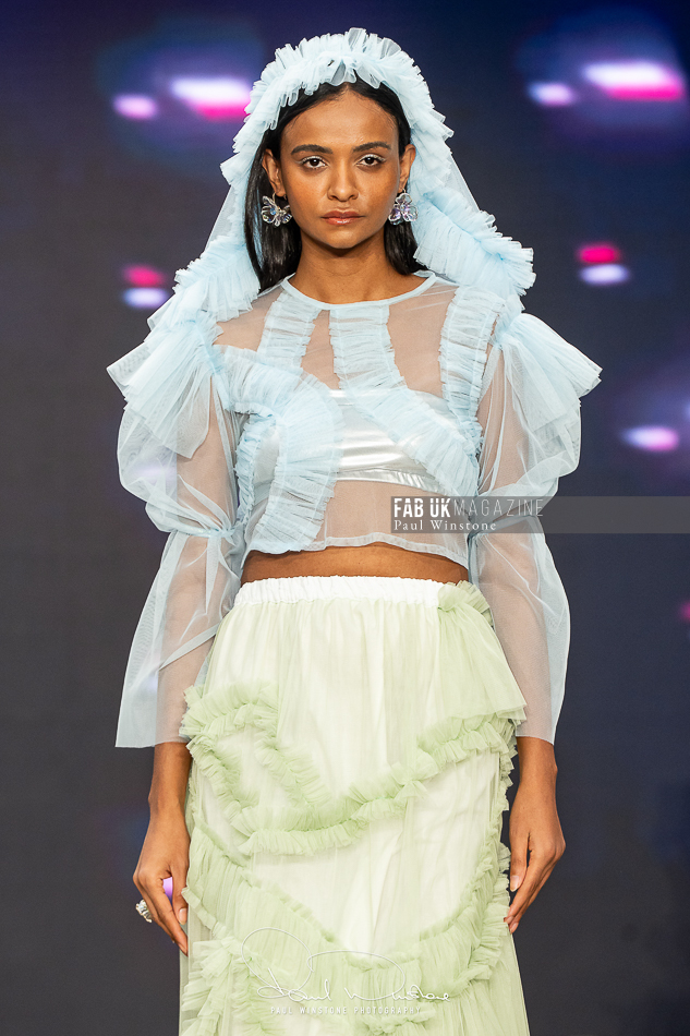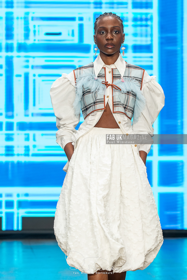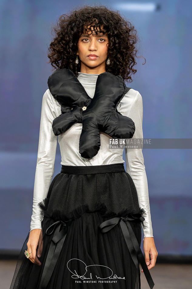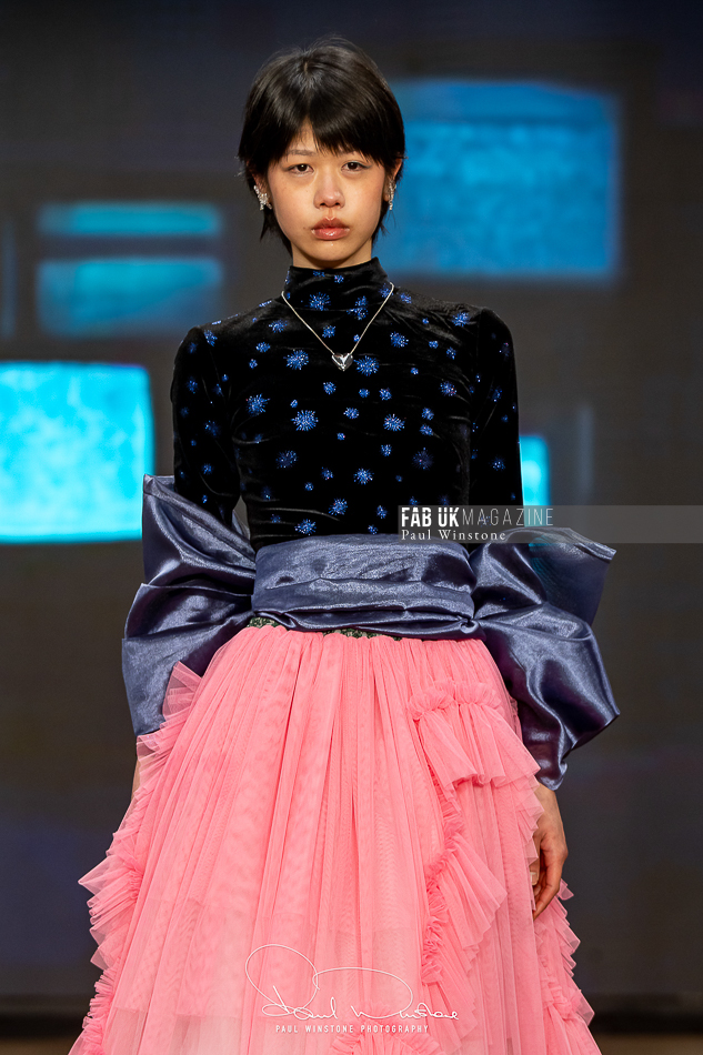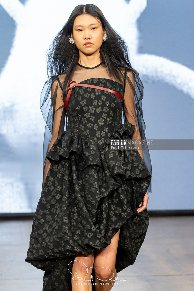 The beauty looks perfectly complemented Yu’s vision, with Mandy Gakhal (@aofmakeup) leading the makeup team, in partnership with Dermalogica UK. Meanwhile, Odete Da Silva (@odetedasilvahair) crafted stunning hairstyles using Goldwell UKI and Varis Pro Hair, enhancing the collection’s ethereal essence.