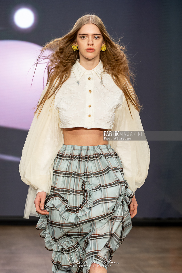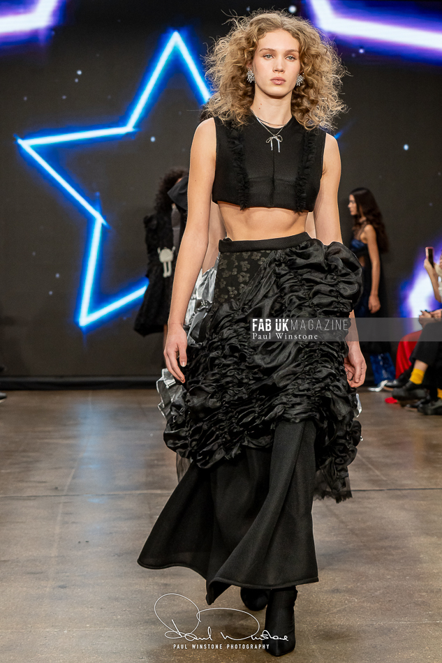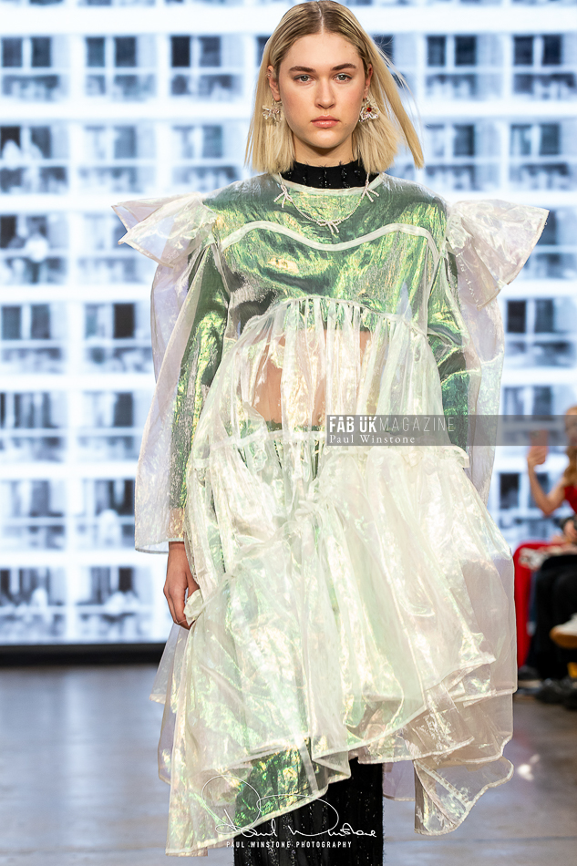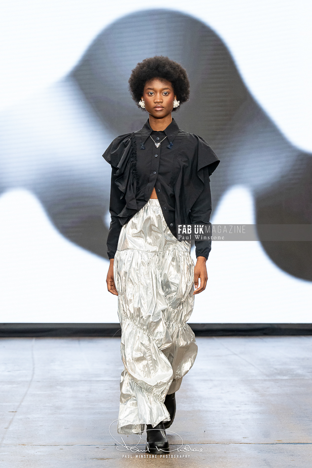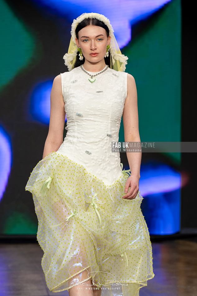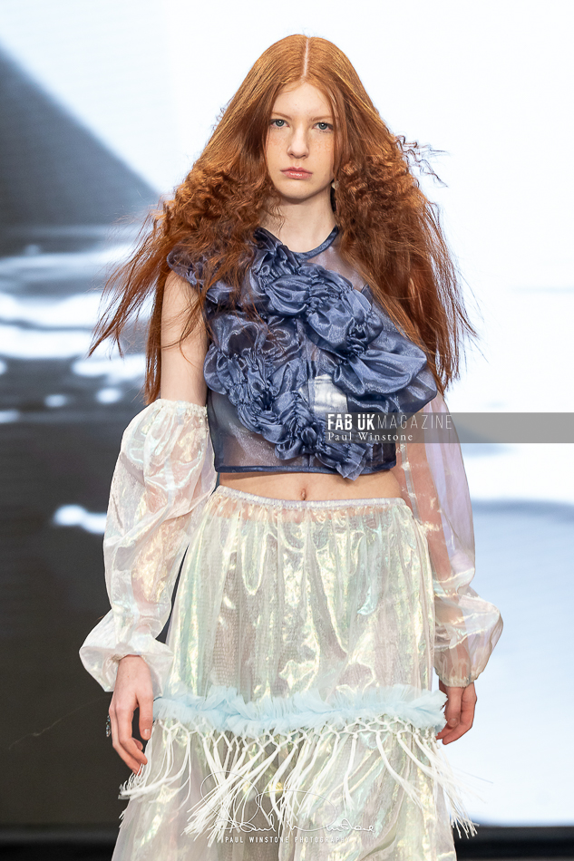 The beauty looks perfectly complemented Yu’s vision, with Mandy Gakhal (@aofmakeup) leading the makeup team, in partnership with Dermalogica UK. Meanwhile, Odete Da Silva (@odetedasilvahair) crafted stunning hairstyles using Goldwell UKI and Varis Pro Hair, enhancing the collection’s ethereal essence.
