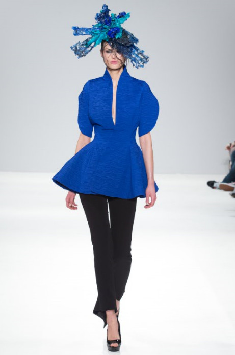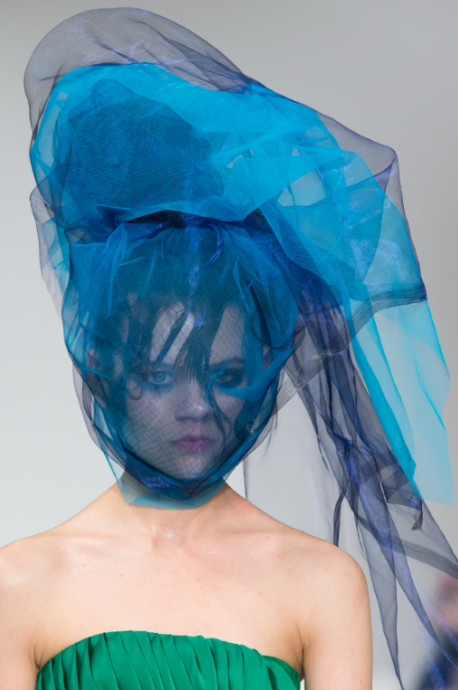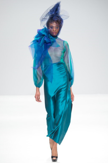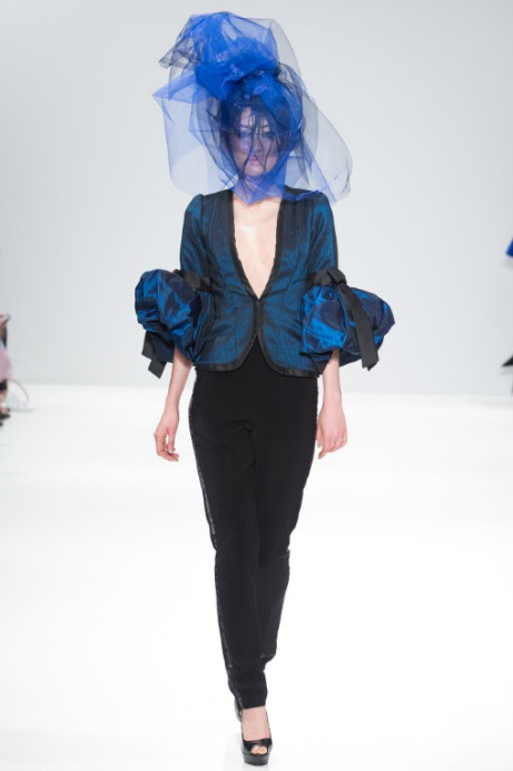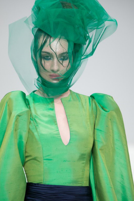 The finale look is an all-black gown made from gazer silk and organza, complimented with this seasons signature sleeves, amplified to create a powerful silhouette.