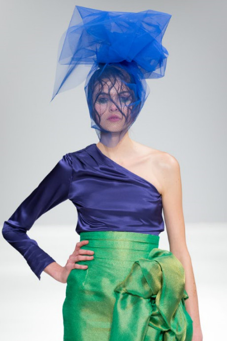palette for the Carballosa woman sees hues of blue, green and yellow with accents of metallic adding another dimension of texture.