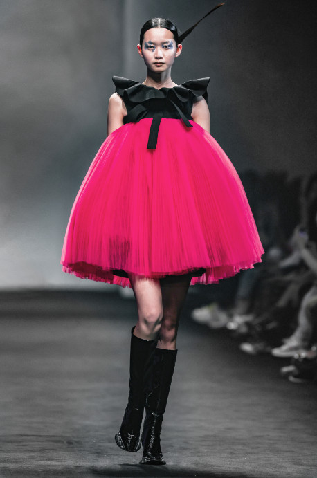 Angel Chen’s colourful approach to fashion and fusion of East and West has become her trademark. The same way Angel expertly manipulates colour, she instinctively and naturally inserts Wang’s artistry in the collection.