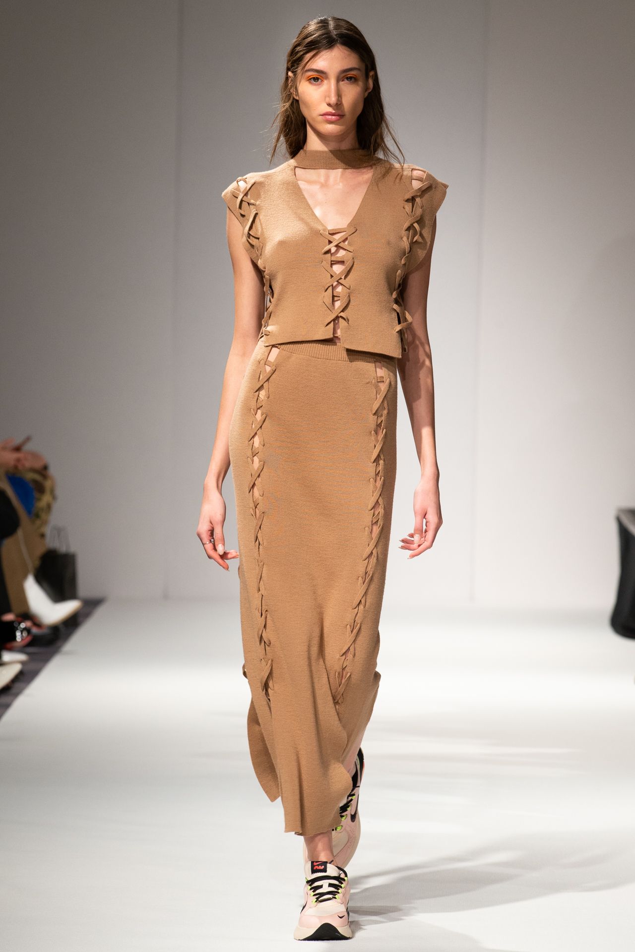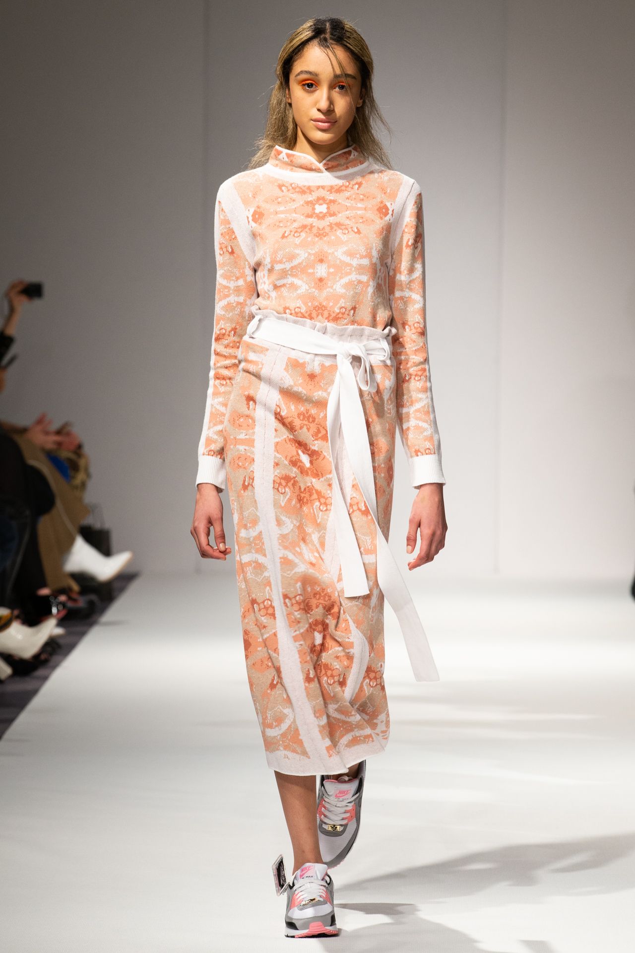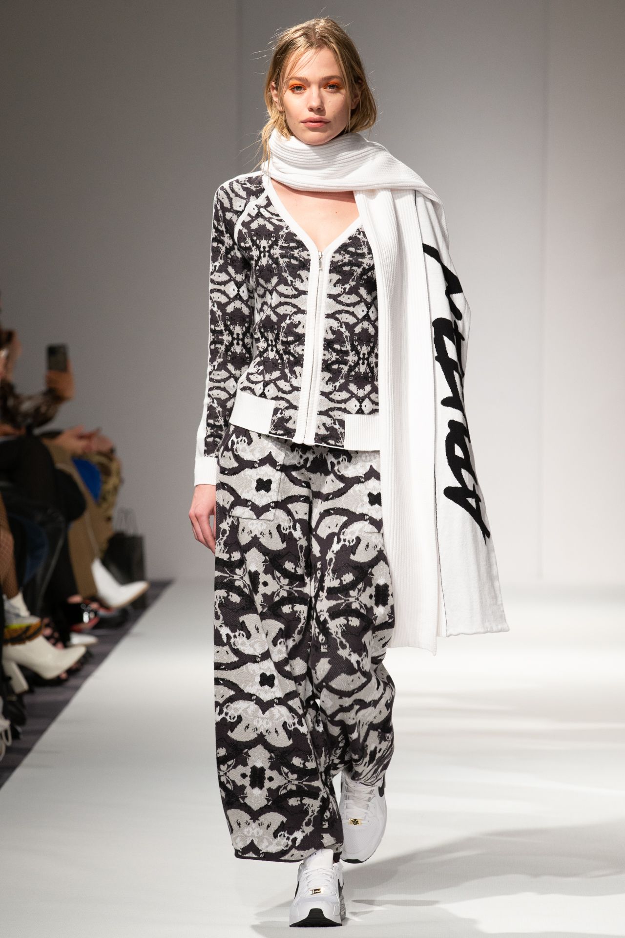 As with previous collections, APUJAN works with his original and exclusively developed fabrics, using a wide range of techniques such as digital embroidery, semi 3-D jacquard fabric, transparent embroidery and digital print. He also works with varies materials such as silk, cotton and cashmere, as well as lamb and merino wools. A variety of knitted styles are created with these raw materials using both manual and automated weaving. A large number of computer-generated techniques are also used this season to create the knitted styles.