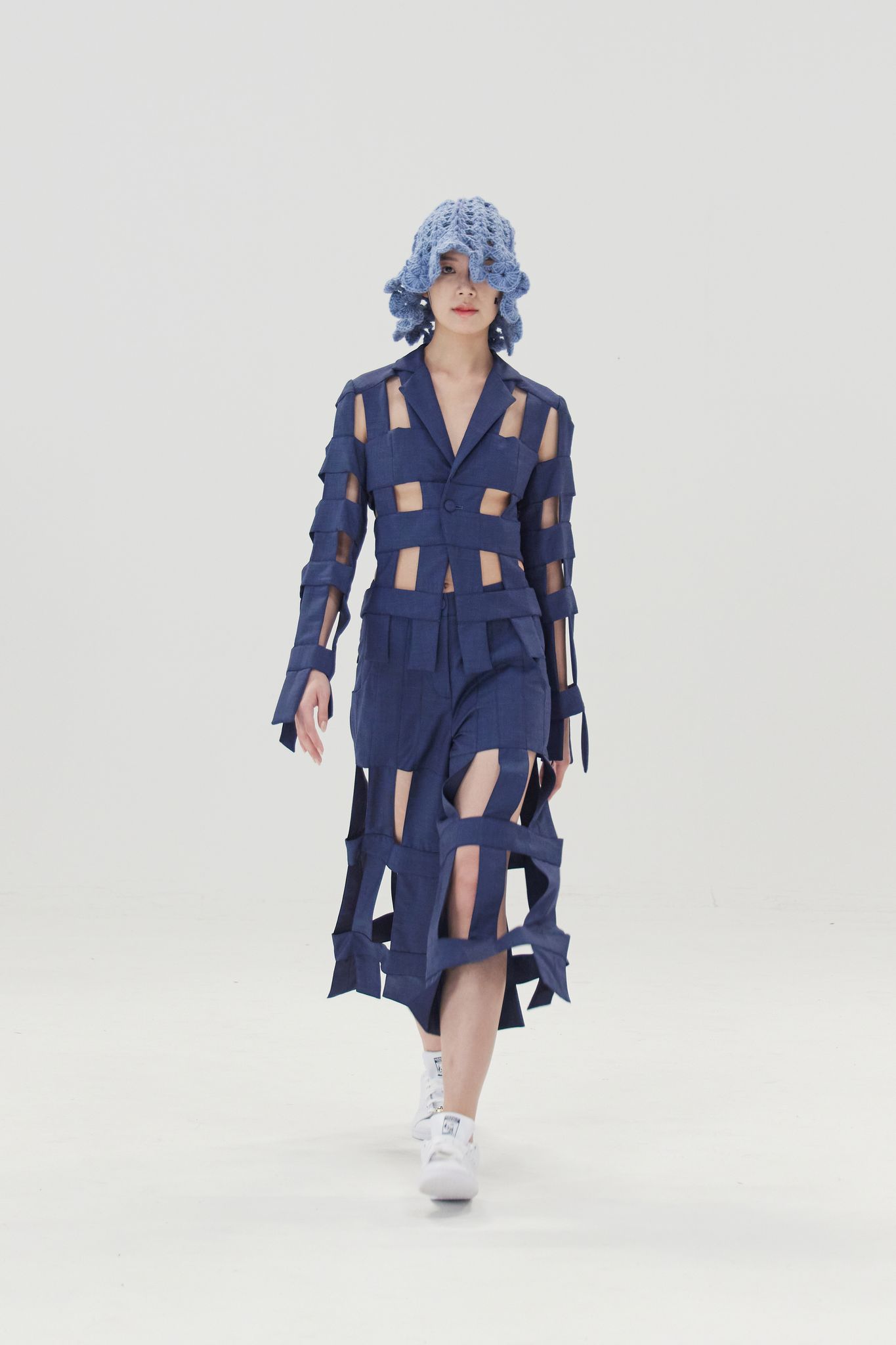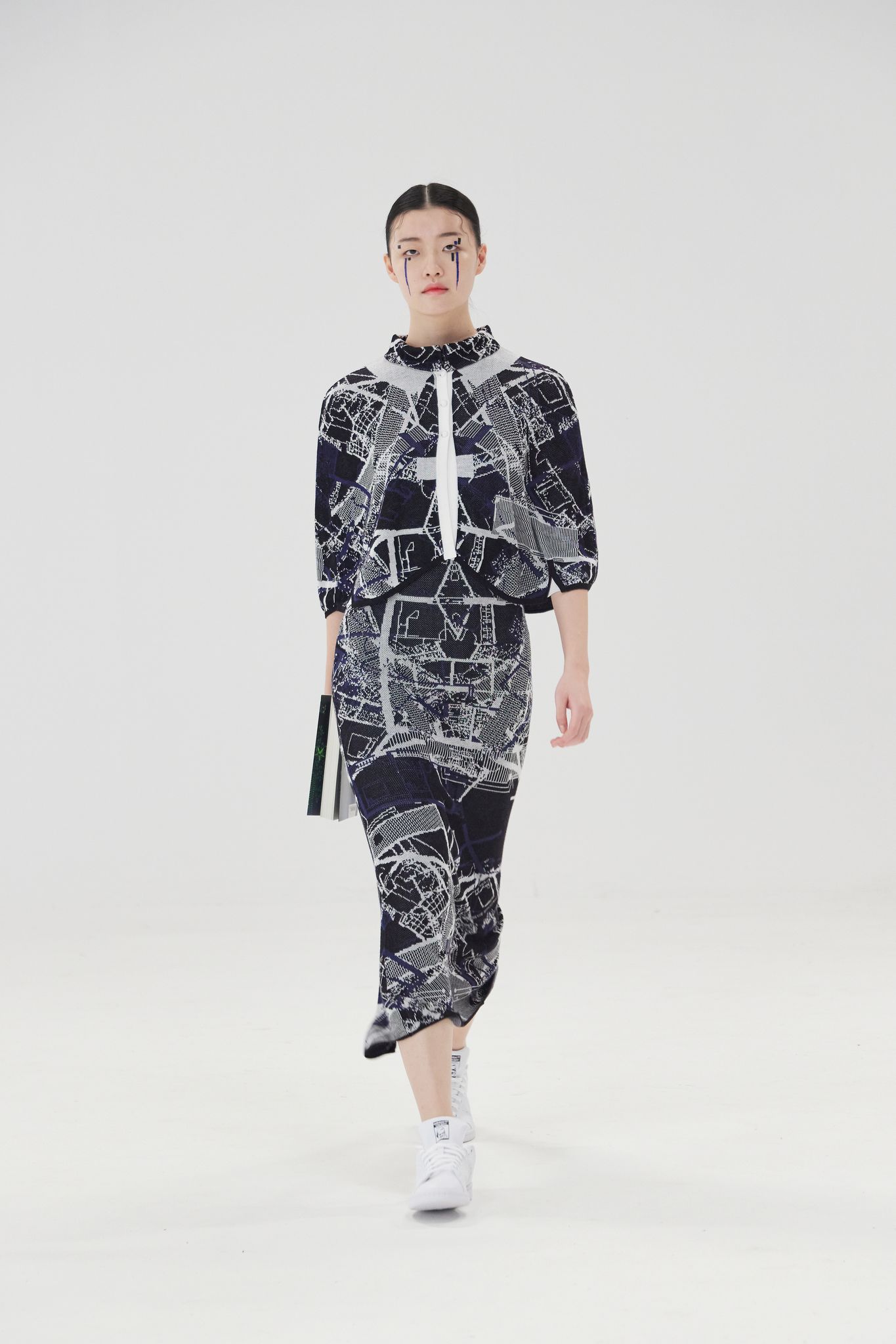 Every scenario in the film echoes the physical fashion show. The detective, for example, represents the guests of the show and the manager is the brand representative. The echo resonates through every aspect. It reflects the invitation, the scan entry for the show, the live performance from the music producer as well the social aspect of the show. The showcasing of different clothes, accessories, shoes, hair and make-up, and even the final bow at curtain fall are all part of the reflection that echoes between the digital and physical show, with the clothes being the centre of the focus.
