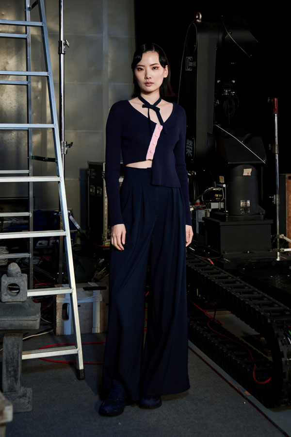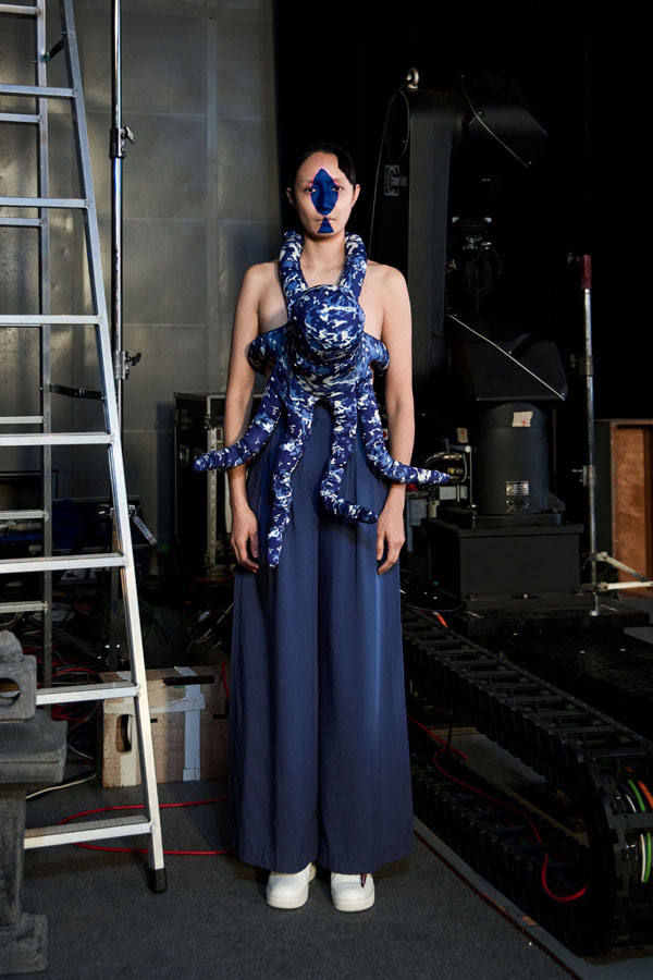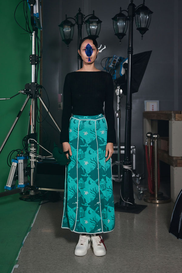 Continuing APUJAN’s signature storytelling approach, the AW25 collection integrates traditional Eastern garment elements with modern Western silhouettes. The color palette, dominated by blue, pink, green, and black, evokes the mysterious depths of the ocean, enhanced by prints and fabrics resembling ripples and underwater elements.