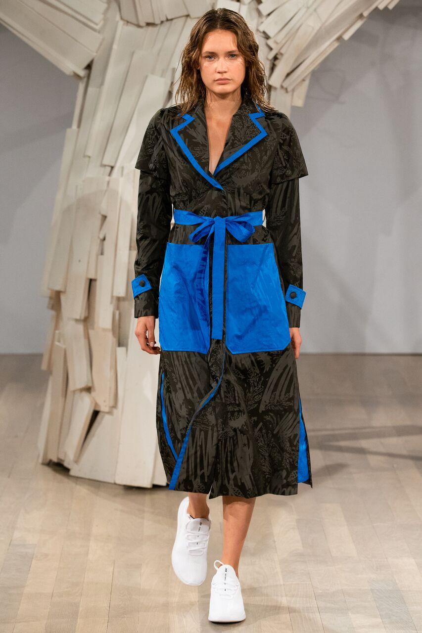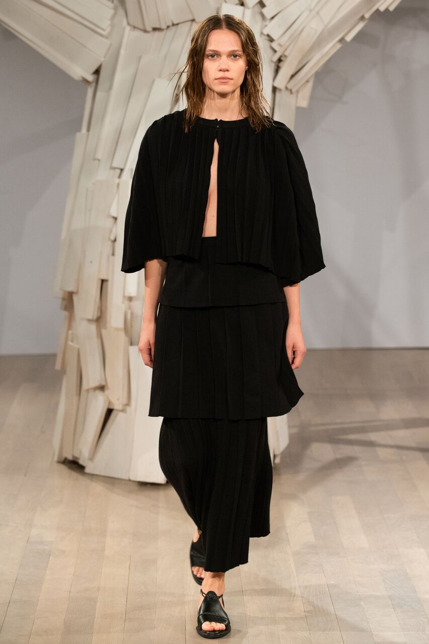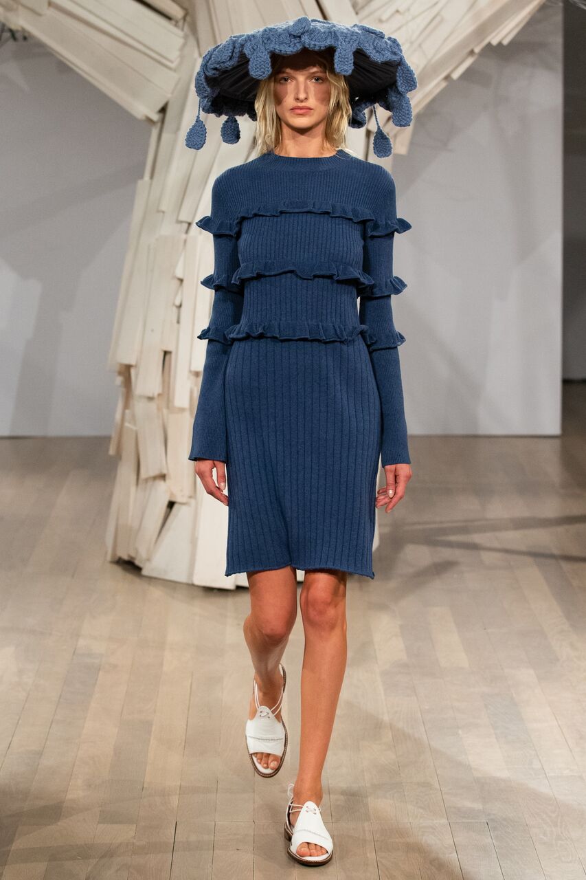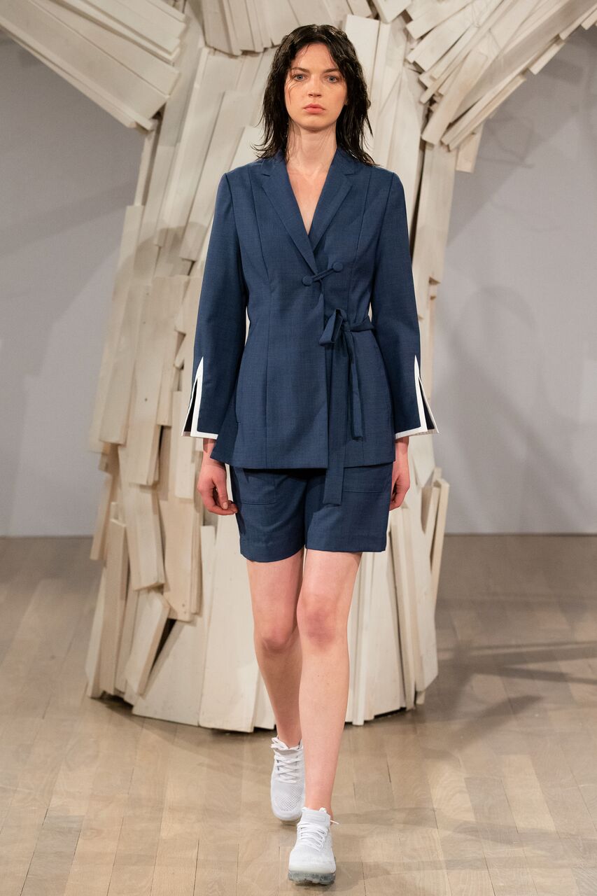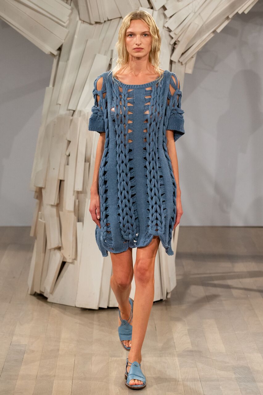 The entire collection mixes classical styles with modern leisure, using techniques ranging from traditional hand-knitting to modern computer knitting; even a mixture of both, which he has achieved with special applications of knitting techniques. He also creates his own jacquard fabric mimicking the effect of embroidery with a computerised machine.