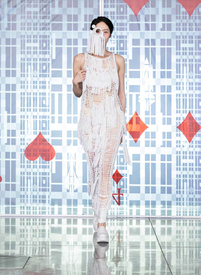 The fashion show is a representation of this story, through the eyes of the agent who broke into the other world, where the audience is not only watching the film but becomes part of it.