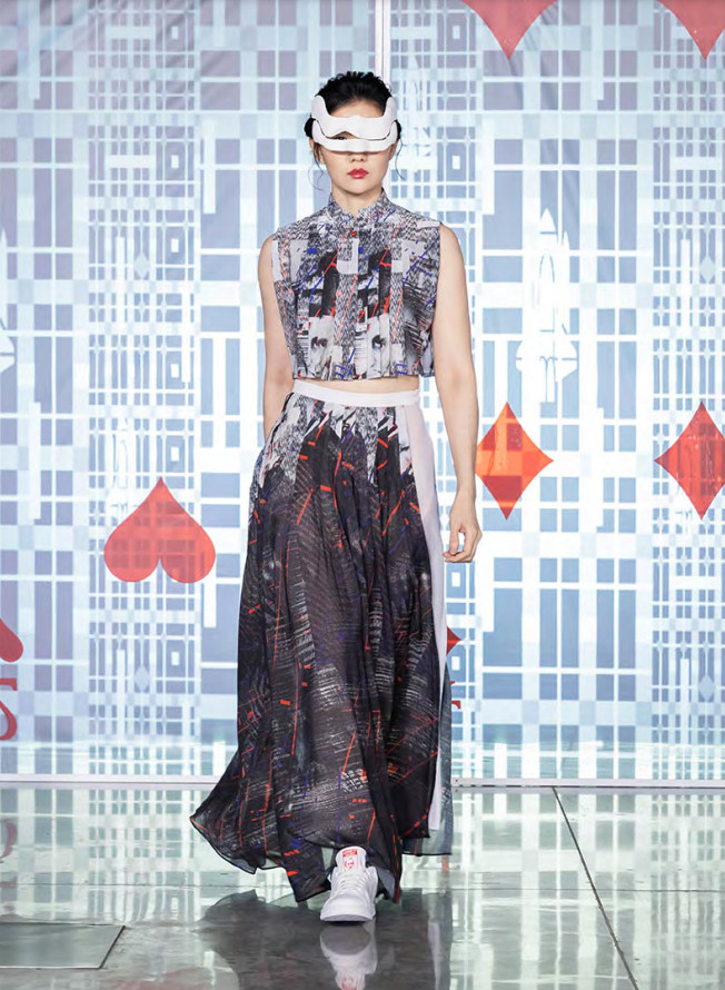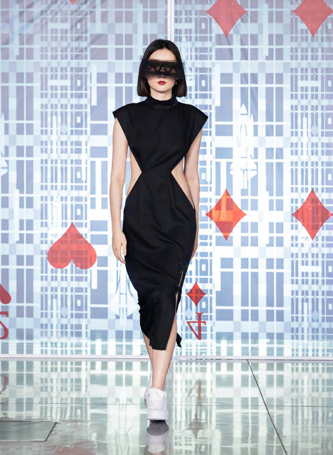 The fashion show is a representation of this story, through the eyes of the agent who broke into the other world, where the audience is not only watching the film but becomes part of it.
