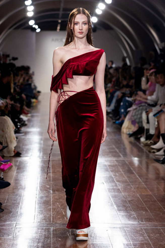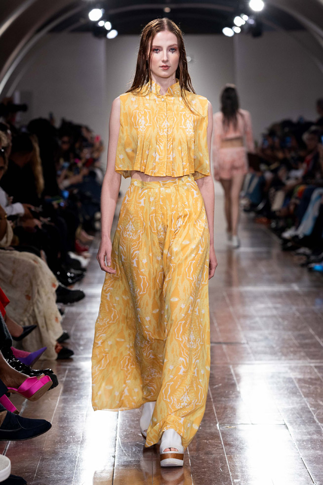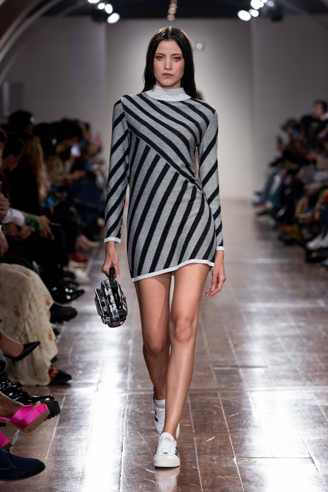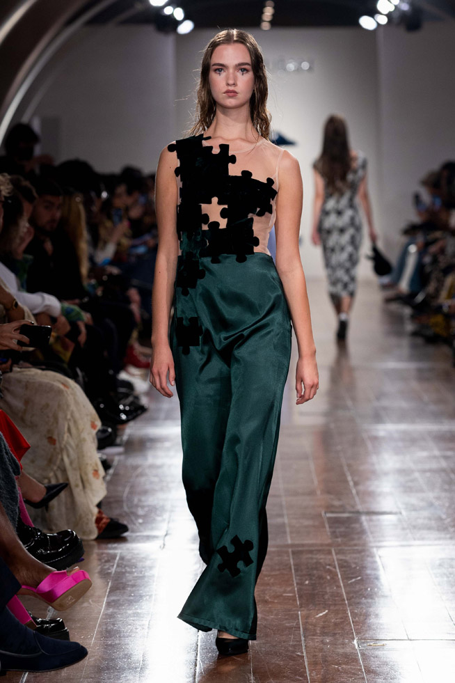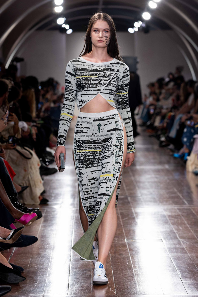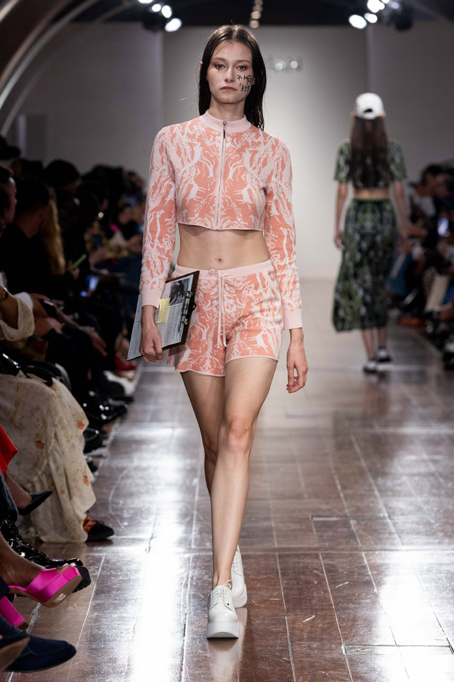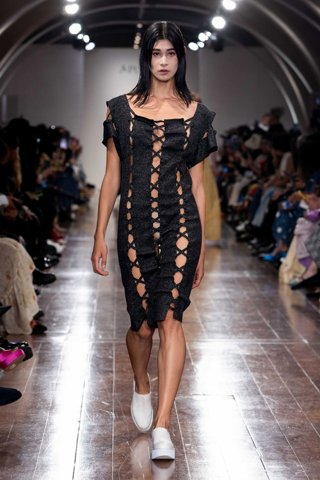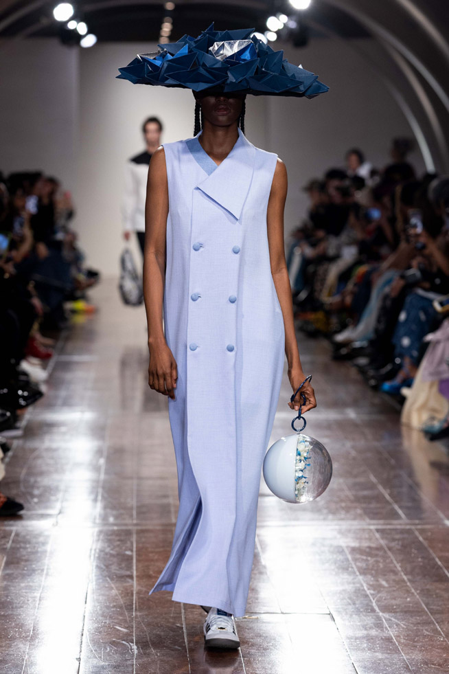 “The Casebook of Kaiju” collection comprises over a hundred outfits, of which thirty are chosen to be showcased at the fashion show. This highlights APUJAN’s iconic spring-summer fine-knit garments, evening gowns, sportswear and leisure wear, printed dresses, shirts, and a few menswear. Simultaneously, new accessories, hats and tape measures were also showcased on the runway.