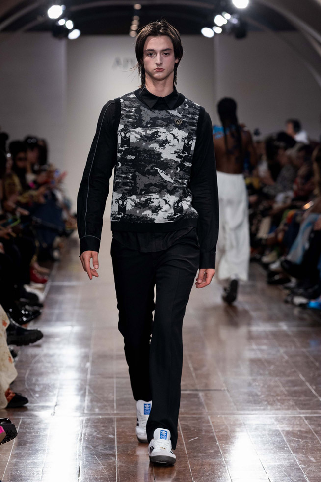 This time, the show is set at Somerset House, a venue that has historically been an iconic location for London Fashion Week, to present the latest season in collaboration with independent music producer DJ so lonely, inviting him to perform in London. Apart from the collaboration with DJ so lonely, shoes used in this season are sponsored by Adidas.
