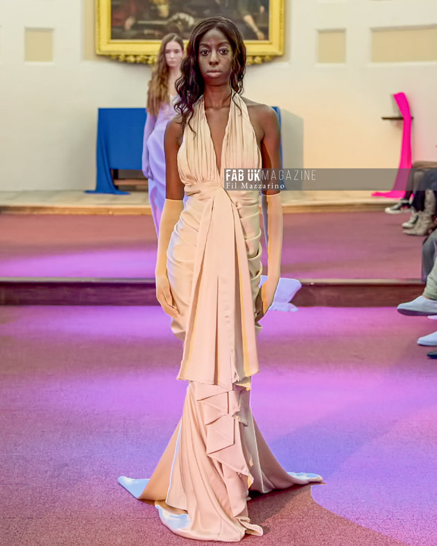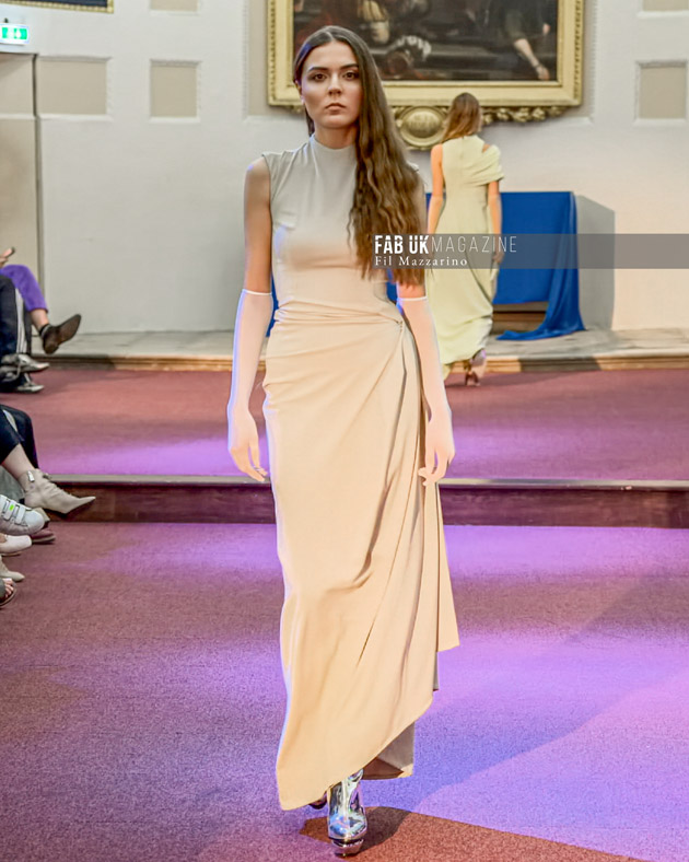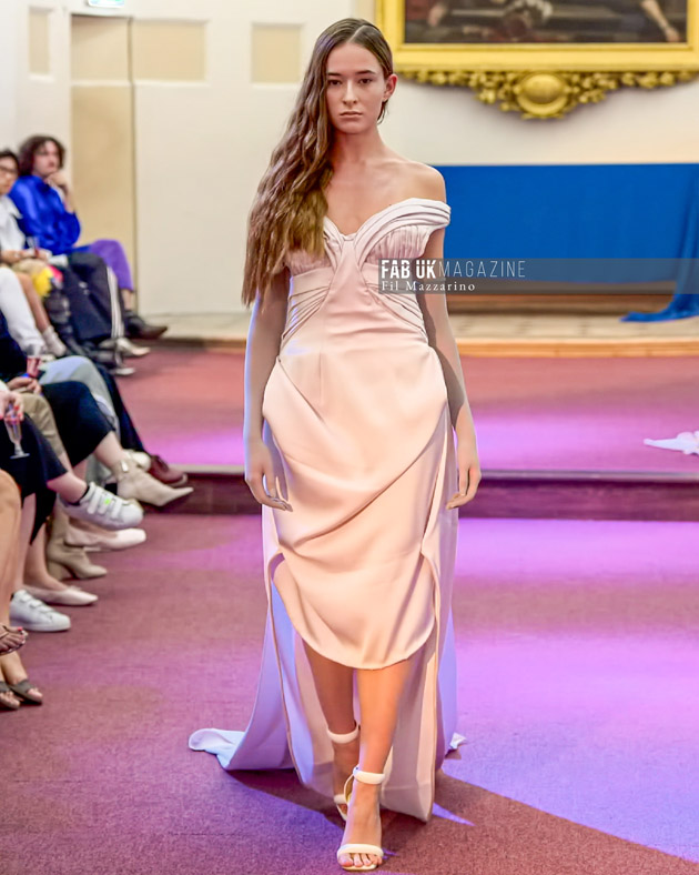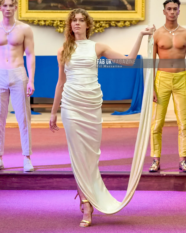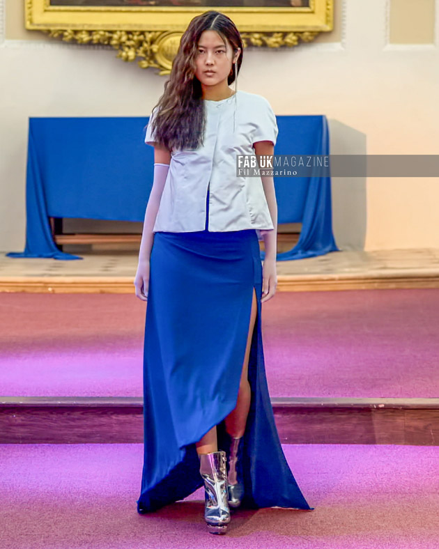 ARIADNE shows couturesque details and draped statuesque use of fabrics as the main feature of the collection. The inspiration shows futuristic element of minimal cutting that reference 2003 Helmut Lang meets 1980’s Yves Saint Laurent, futuristic mythology in light summer tones evoking the shimmering sea and tones of the summer sky the collection features shades of Blue dominating the pastel and stone colours.