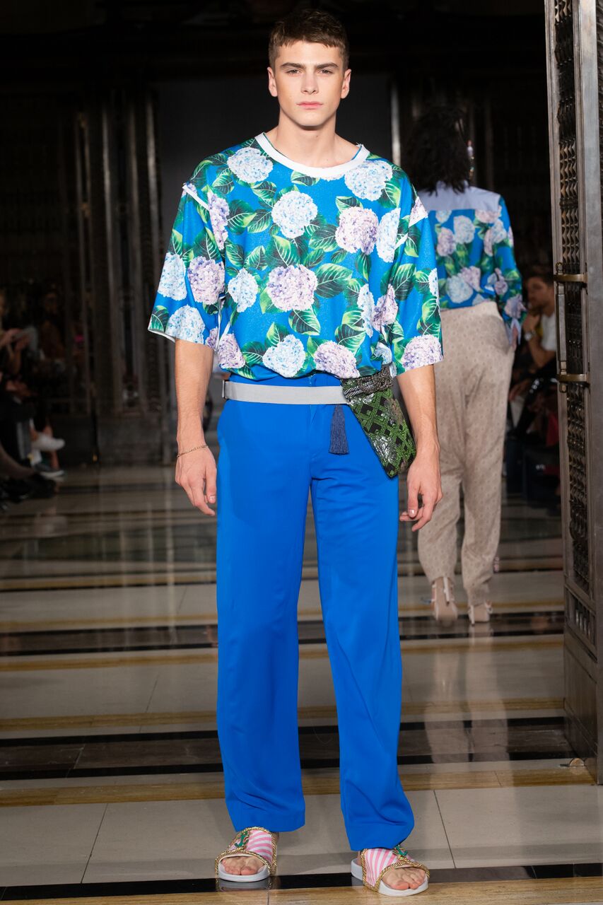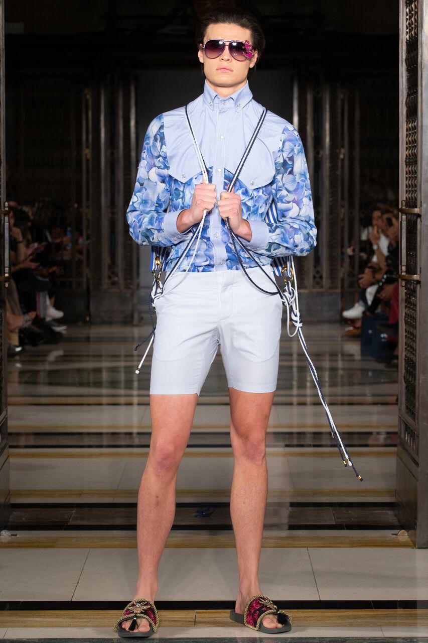Isham’s boys show their feathers with intricately embellished and meticulously embroidered peacocked co-ords that take you from Ibiza yacht to Ibiza nightclub. Ashley delivers his signature bomber jacket with a playful twist of two-tone combinations that elevate any wardrobe. Ashley’s pick ‘n mix approach to this tropically themed line that screams spontaneity is a celebration of his innate flamboyance. A welcomed return to fashion’s favourite flavour.