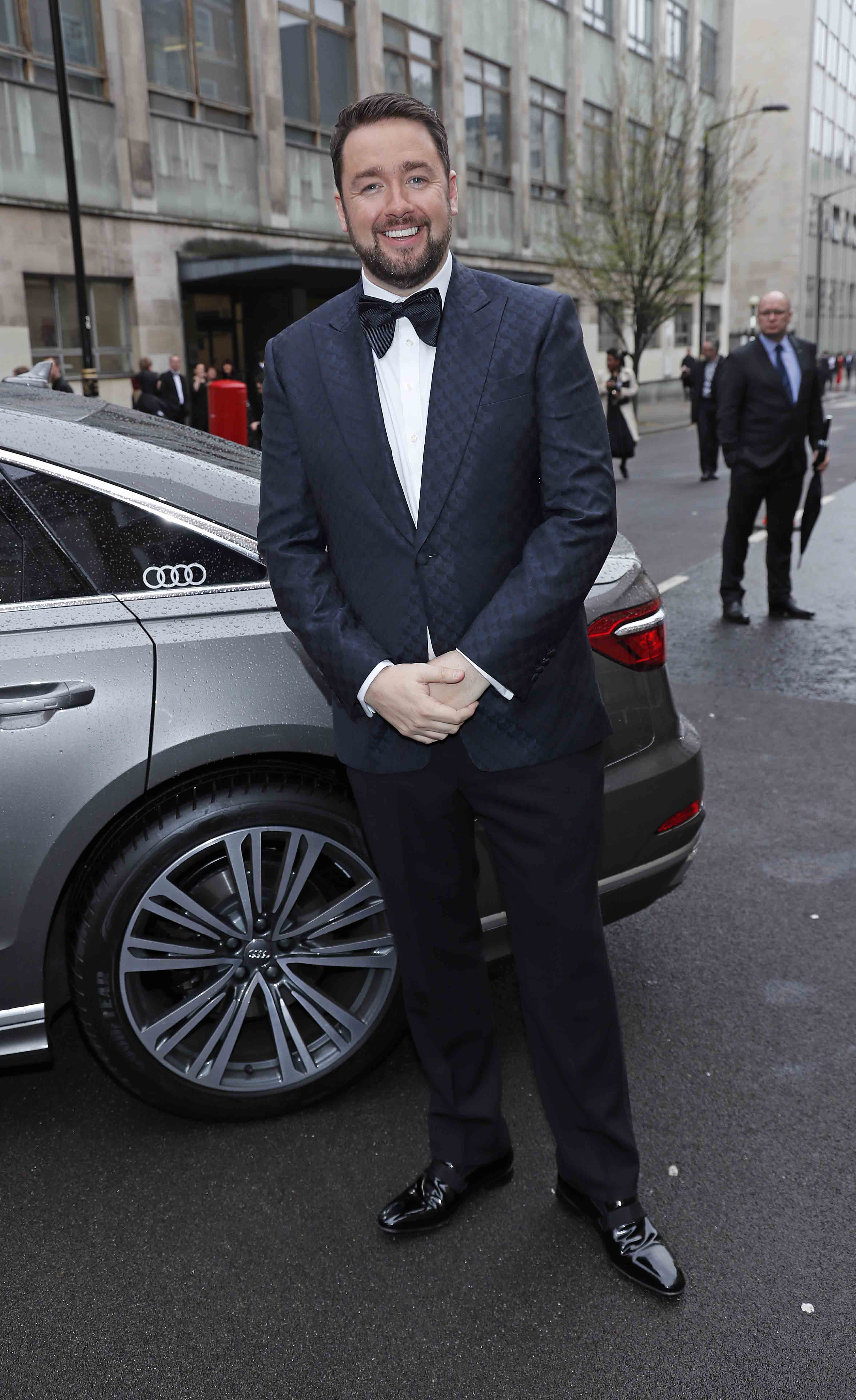 LONDON, ENGLAND – APRIL 07: Jason Manford arrives in an Audi at the Olivier Awards 2019 at Royal Albert Hall on April 07, 2019 in London, England. Pic credit: Dave Benett