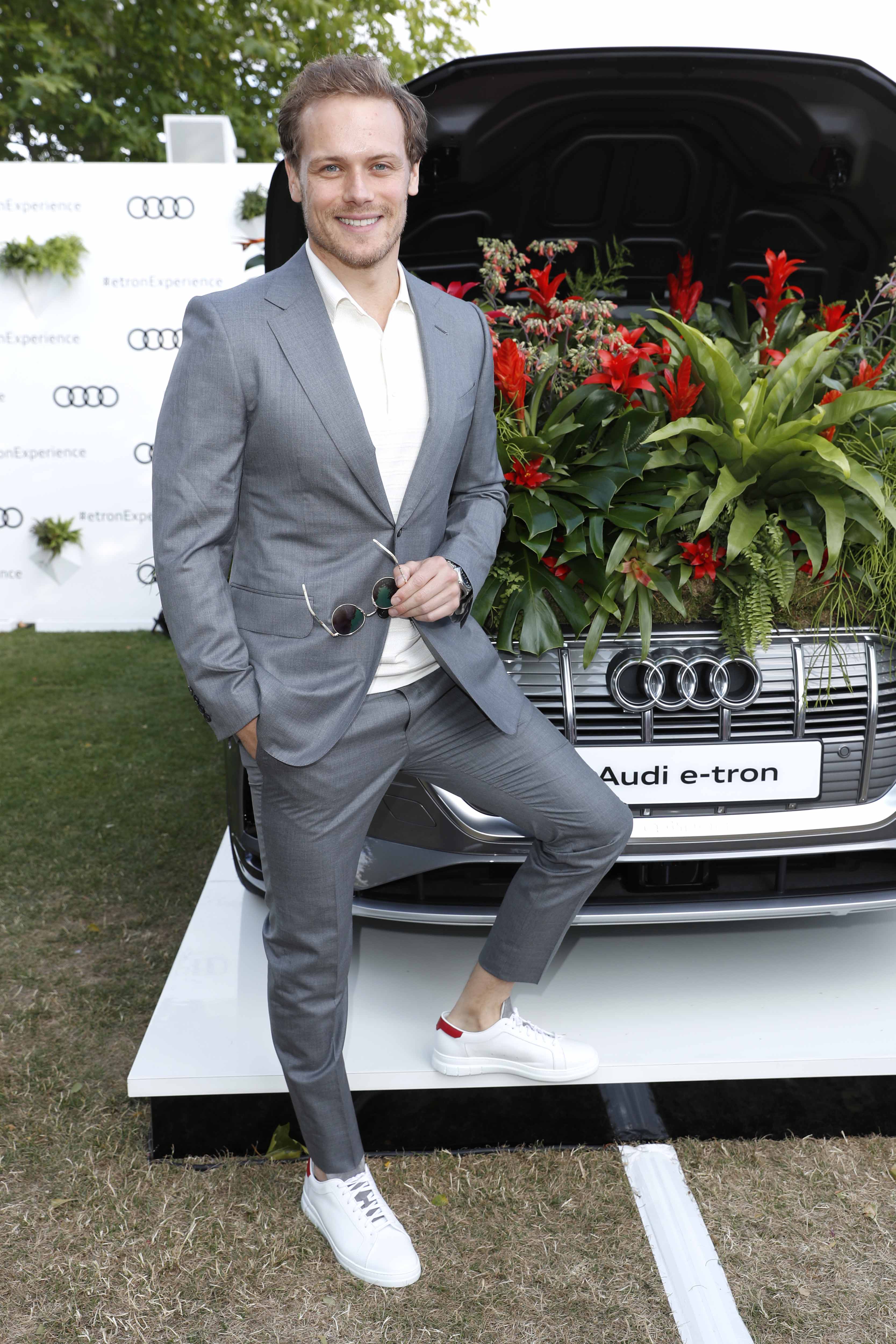 HENLEY-ON-THAMES, ENGLAND – JULY 12: Sam Heughan, Audi guest at Henley Festival, Oxfordshire, Friday 12 July in Henley-on-Thames, England. (Photo by David M. Benett/Dave Benett/Getty Images for Audi)