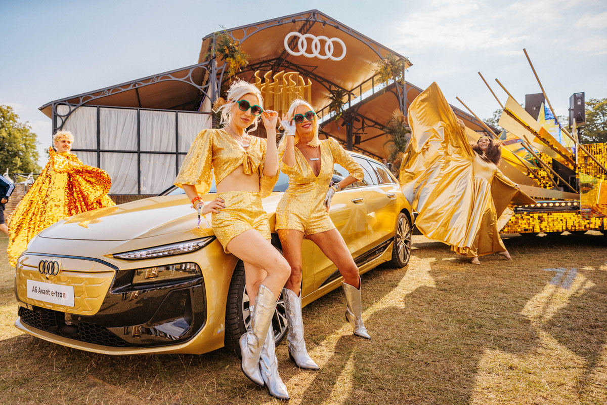 By popular demand, the Audi Wonder Parade returned. Discoliscious legends Denise Van Outen and Jemma Bolt, led by the all-electric Audi A6 Avant e-tron, lighting up the festival in a glitter-fuelled celebration.