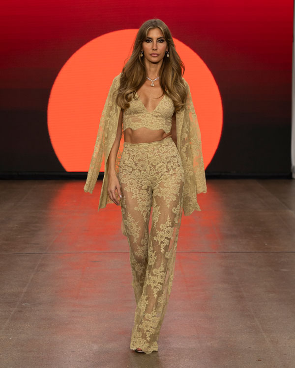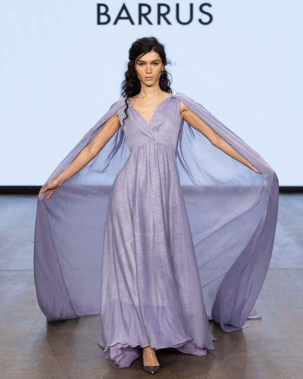 Barrus’ commitment to luxury and sustainability was evident in the use of eco-conscious materials, including recycled fabrics, ethically sourced Bursa silk, delicate French lace, and feather-light tulle. Hand-beaded crystals sparkled like morning light on ancient stone, while silver-thread embroidery reflected the intricate mosaics of Ephesus.