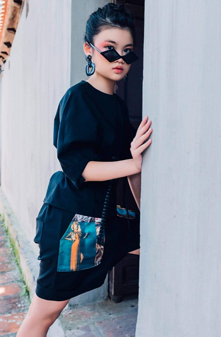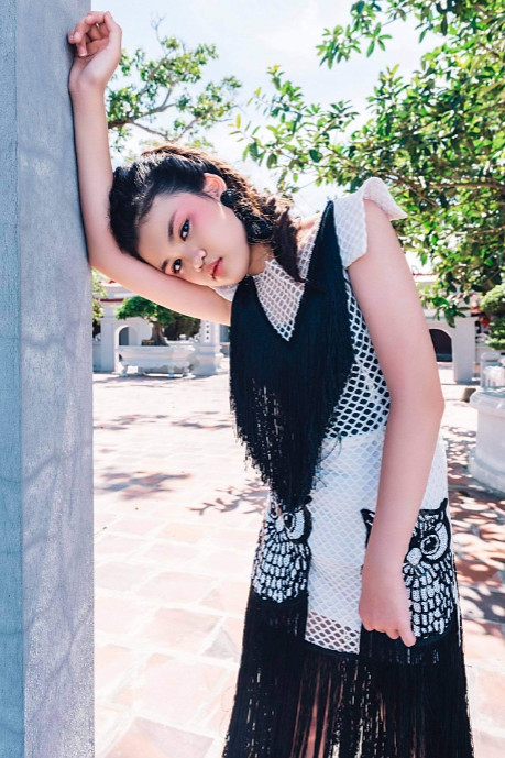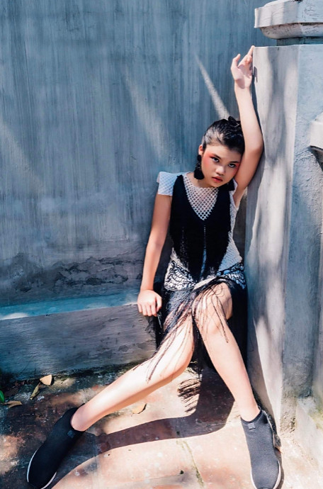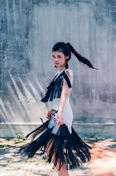 ‘Black and white’ was the new theme model TRANG ANH was going for in this particular photoshoot. The outfit was exceptionally gorgeous and the intricate owl designs were beautiful too! Behind her, the landscape contrasted well with the dress as it’s bright colours made the dress ‘pop out’.