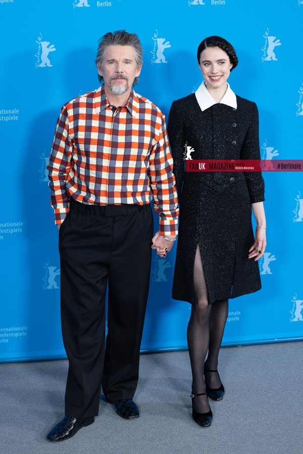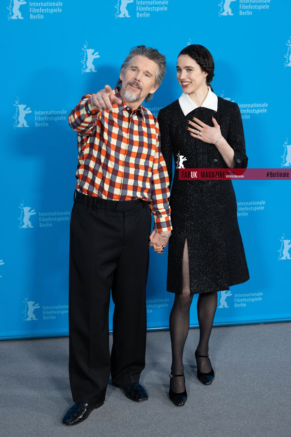 Margaret Qualley and US actor Ethan Hawke pose during a photo call for the film ‘Blue Moon’ at the 75th Berlin International Film Festival (Berlinale), in Berlin on February 18, 2025. (Photo by Victoria Mazurova/FABUK)