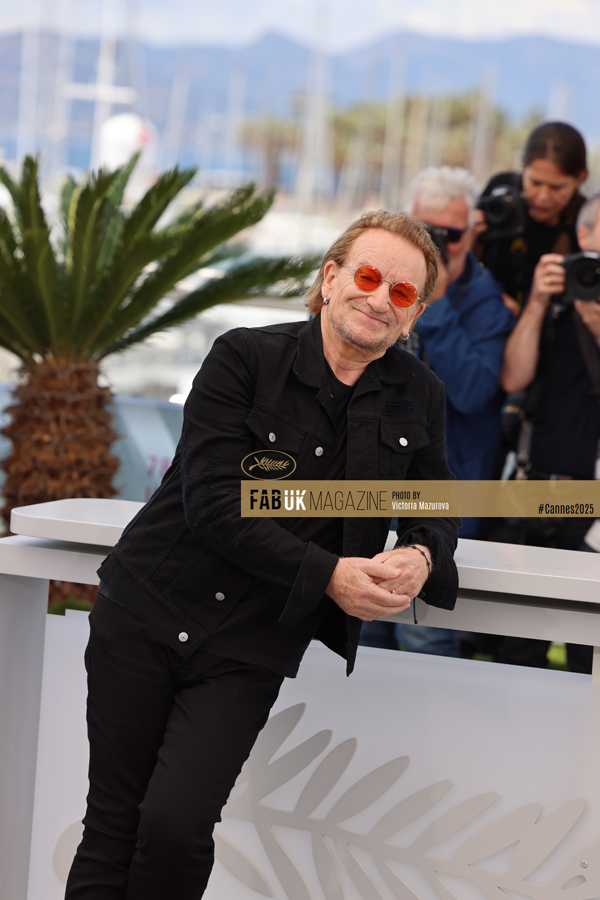 Bono poses during the “Bono: Stories Of Surrender” photocall at the 78th annual Cannes Film Festival at Palais des Festivals on May 17, 2025 in Cannes, France. (Photo by Victoria Mazurova/Fabuk)