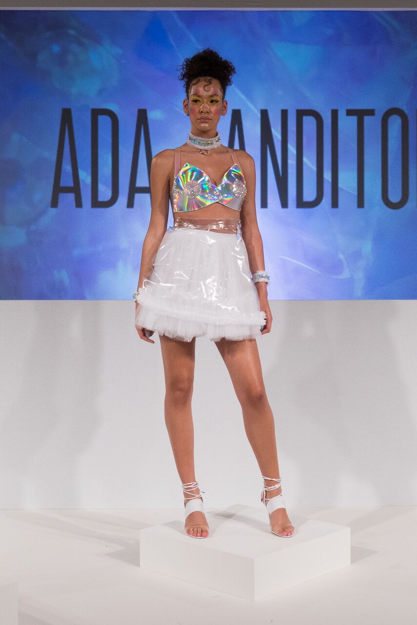 Ada Zanditon Couture collaborated with The London School of Make-Up and creative lead artist Astrid Kearney. The London School of Make-Up is a world-renowned school offering professional courses in make-up artistry in central London leading to recognised industry standard international qualifications. Make-Up Designer Astrid Kearney, working with Kryolan products, is leading the team of artists from The London School of Make-Up to create a sensational hyper-real candy shimmer aesthetic to perfectly complement the collection.