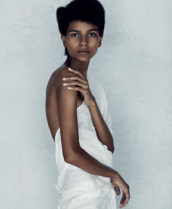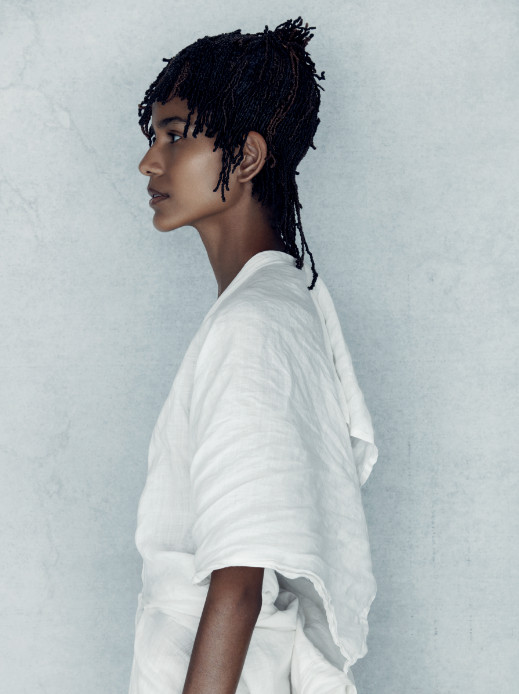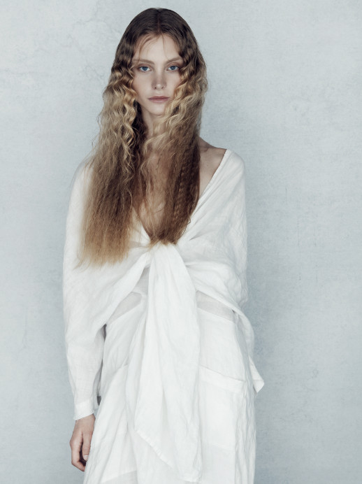 I wanted the hair to breathe, working with natural undertones in the hair colour and simple textures that are not overworked, allowing each picture to have a beautiful moment of simplicity. One linen dress was morphed to suit the model and emotion of each image without being overpowering. Make-up emphasised each model’s natural beauty, while photography was muted and saturated so the finished look was like a painting. This collection is about all the elements working together and capturing simplicity at its best.” Sally Brooks, 2018 British Hairdresser of the Year