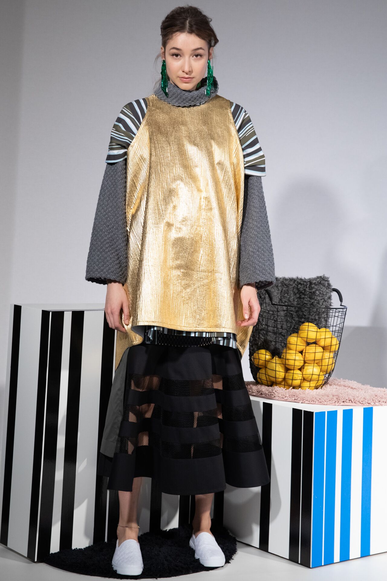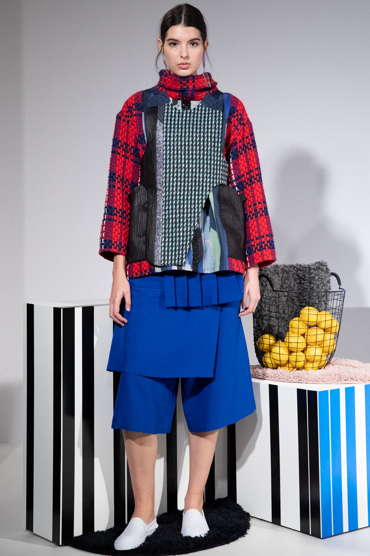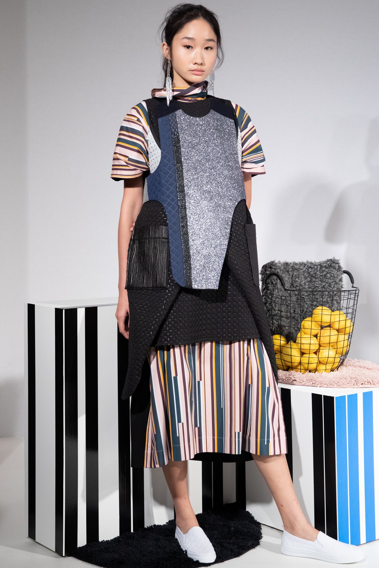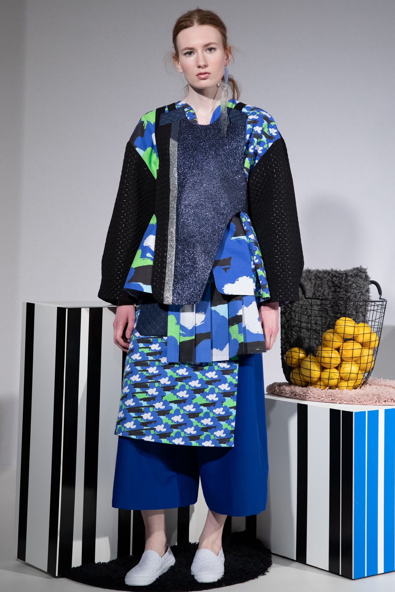 Known for loose-fitting silhouettes, original prints, and lightweight textiles, Cassey Gan explores thicker fabrics for the first time. Her colour pallet of blues, olives, maroons and mustards build the collection alongside wool and padded fabrics, furthering Gan’s textured approach to her luxurious AW19 pieces. The collection uses innovative shapes and heavy layering, but shifts between representation and abstraction as if to unfold something newly felt. Comfort and style are of equal importance for the label – aiming for a timeless modern appeal, Pixelated will focus on metaphor and craftsmanship to achieve the collection’s goals.