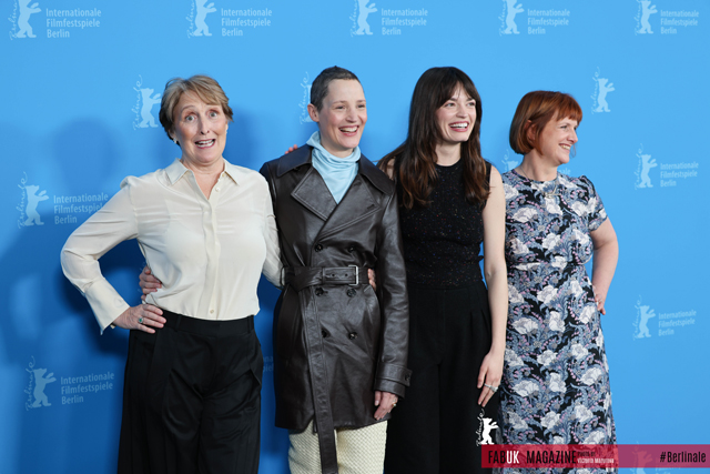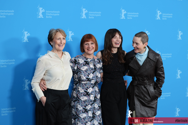 (L R) Irish actress Fiona Shaw, Luxembourgian actress Vicky Krieps, British French actress Emma Mackey and British director Rebecca Lenkiewicz pose during a photo call for the film ‘Hot Milk’ at the 75th Berlinale, in Berlin on February 14, 2025. (Photo by Victoria Mazurova/FABUK)