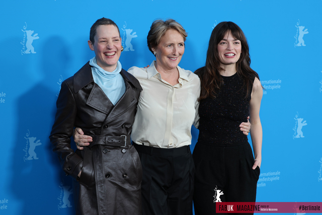 (L R) Luxembourgian actress Vicky Krieps, Irish actress Fiona Shaw and British French actress Emma Mackey pose during a photo call for the film ‘Hot Milk’ at the 75th Berlinale, in Berlin on February 14, 2025. (Photo by Victoria Mazurova/FABUK)