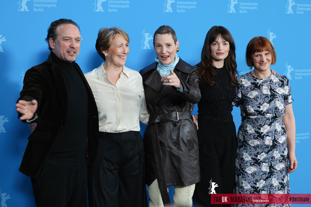 (L R) Swiss actor Vincent Perez, Irish actress Fiona Shaw, Luxembourgian actress Vicky Krieps, British French actress Emma Mackey and British director Rebecca Lenkiewicz pose during a photo call for the film ‘Hot Milk’ at the 75th Berlinale, in Berlin on February 14, 2025. (Photo by Victoria Mazurova/FABUK)