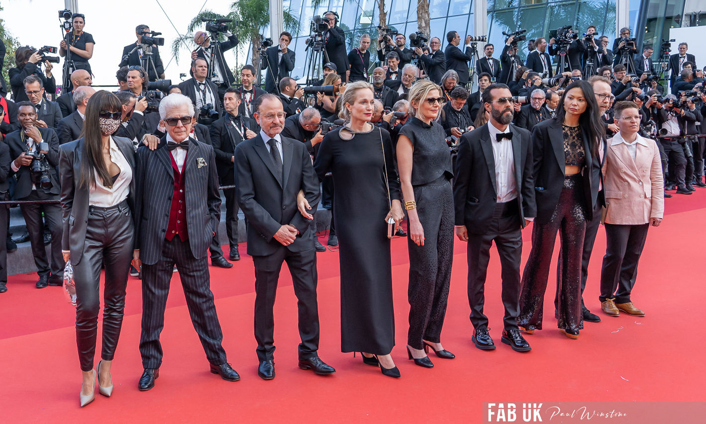 Producer Philippe Bober, Lukas Turtur, Ksenia Devriendt, Luke Barker, Director Jessica Hausner, Mia Wasikowska, Elsa Zylberstein, Mathieu Demy, Amir El-Masry, Florence Baker, Gwen Currant, Samuel D Anderson and Johannes Schubert attend the “Club Zero” red carpet during the 76th annual Cannes film festival at Palais des Festivals on May 22, 2023 in Cannes, France. (Photos by Paul Winstone/Fabuk)