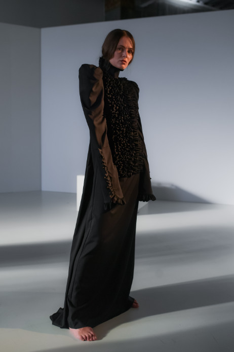 THE ABYSS Collection for Spring Summer 2020 – follows her storytelling narrative. Every piece is unique and has an autobiographical emotional connection. Constantia describes this collection as “ a move forward for me. It is a mature version of myself. The collection is different from what I’ve done before. I found inspiration and mood for the collection in the black garments of the Victorian era. I wanted to combine an aristocratic appearance with the darker attributes of the era. This tension anchored the atmosphere and feeling of the entire collection.”