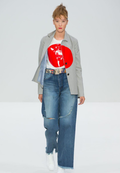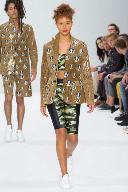 The brand’s DNA is ‘Clash Beauty’ which represents going against the grain in all aspects related to what is considered ‘normal’ and pushing the boundaries of conventional beauty. This seasons collection aims to revolt further and abolishes gender lines in fashion.Rira uses male models for the first time in her career to showcase these unisex designs.The SS18 pieces take on a sports luxe aesthetic with easy wearing garments such as t-shirts, leggings, denim and knee-high socks.