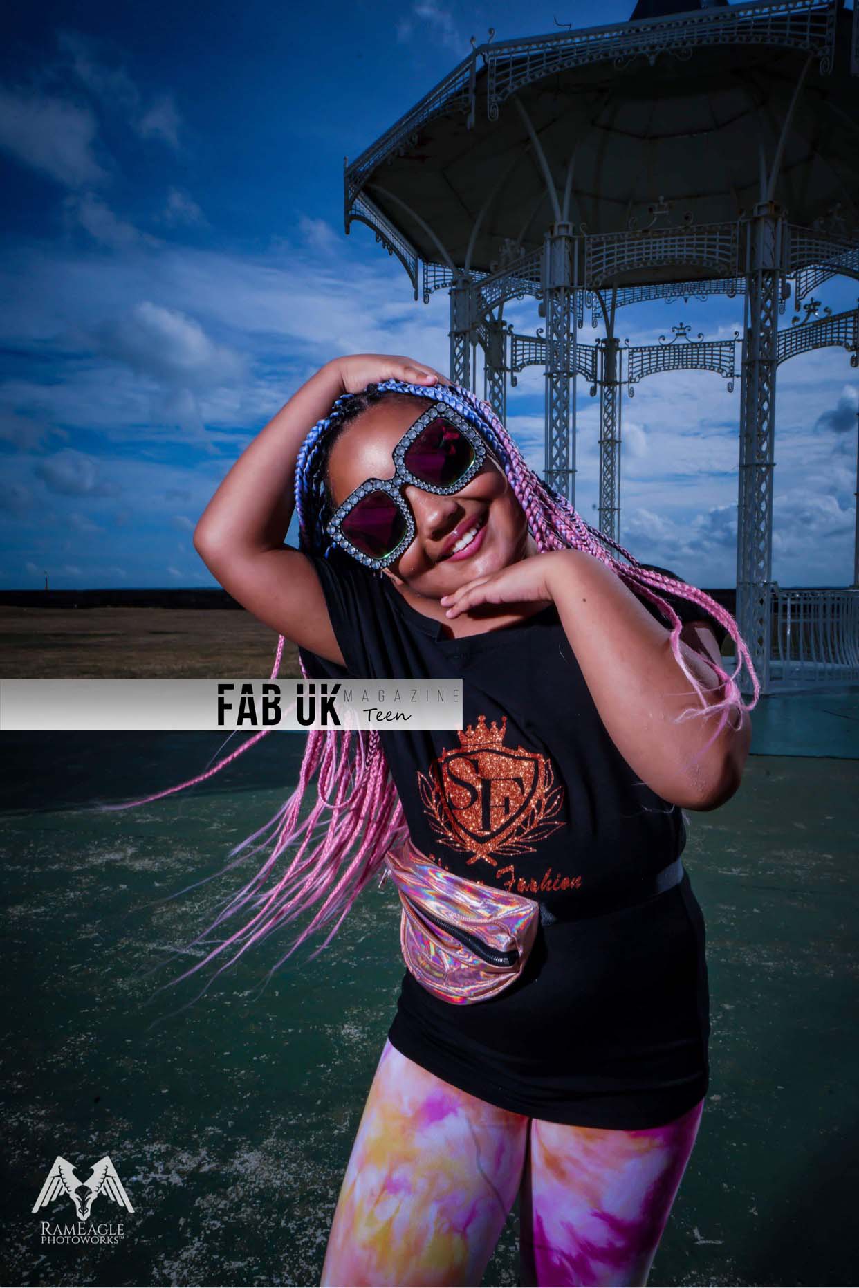 The designer of the clothing is the incredible Be Unique Be You by Anne Wilkinson, a strong, perceptive woman. The uses of original backgrounds and smoke effects give off an eery aura in the photos. A unique use of a black, picture frame, ‘framing’ the model is extremely creative. Along with the long, sleeveless, black dress with black and silver bangles, jewellery and bandana match perfectly with the theme. Gothic eye-makeup matched with a deep red lipstick send a strong statement.