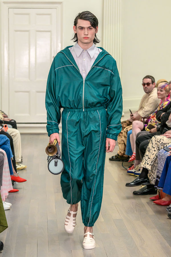 Daniel & James take British club uniforms into a post-practice, summer state of mind, with uniform tailoring brought out into the fresh air and sunlight; Iconic donkey jackets, stay-pressed trouser and shirts, and the ever present knitted singlet become super-light and layered and tracksuits are lifted with fresh, delicate fabrics, as we step out with London pride.