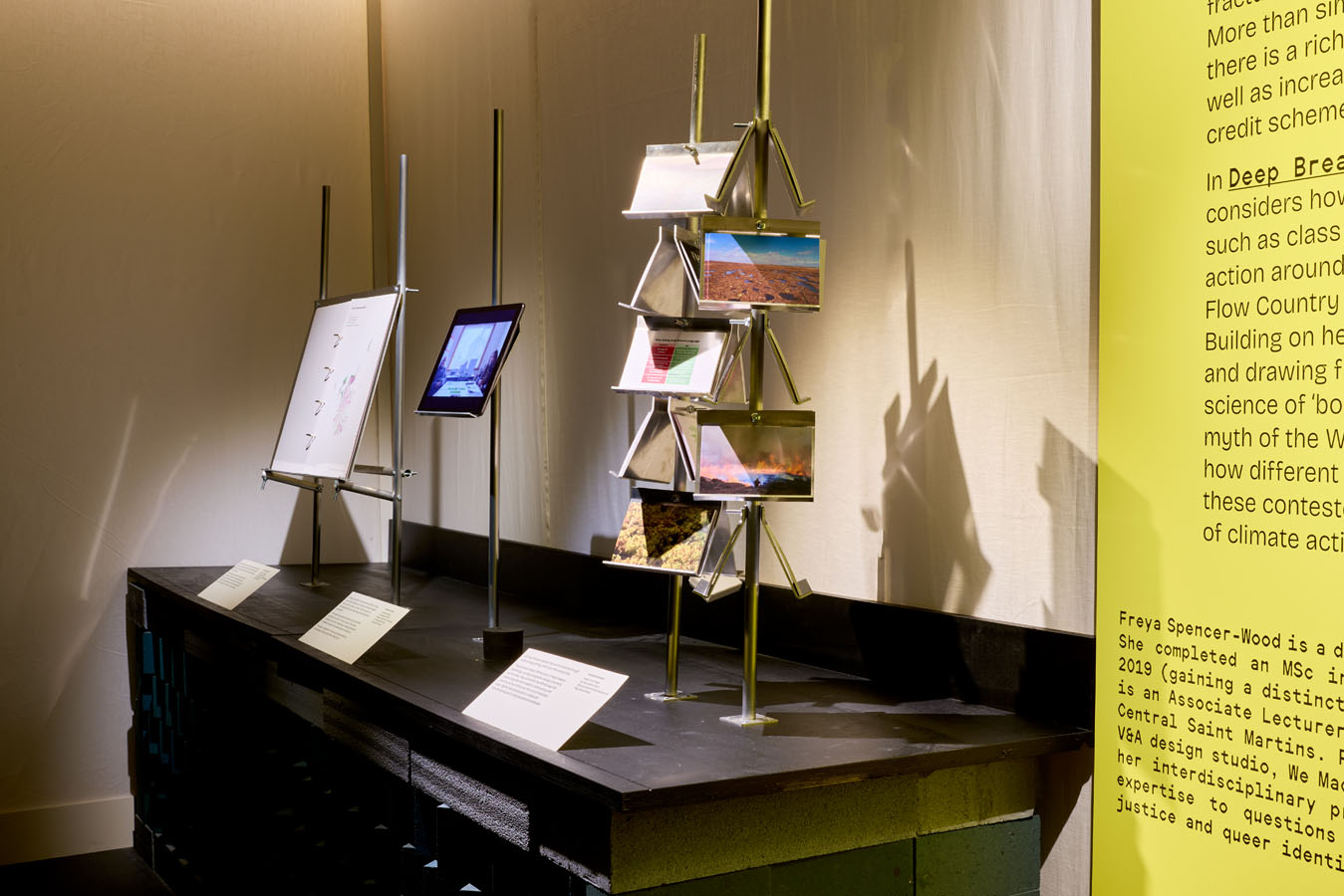 Freya Spencer-Wood explores the contested peatland bogs of the Flow Country in Northern Scotland. Peatland bogs are wetland landscapes that play a vital role in the fight against global heating; when in good health, they can store as much carbon dioxide as forests. Ownership of these landscapes, however, determines their use. Freya will introduce visitors to the various stakeholders laying claim to this land, drawing upon queer theory to consider the role of class and gender in shaping their perspectives. As well as spatial analysis maps that illustrate the concentration of land ownership across Scotland, the display also introduces visitors to those who DESIGN RESEARCHERS IN RESIDENCE 3 work closely with these landscapes through fieldwork video interviews. Her display will centre around a film installation which examines the process of ‘bog breathing’, the gradual movement of the surface of a peatland bog, and hints at the magical tales that animate these landscapes, such as the will-o’- the-wisp.