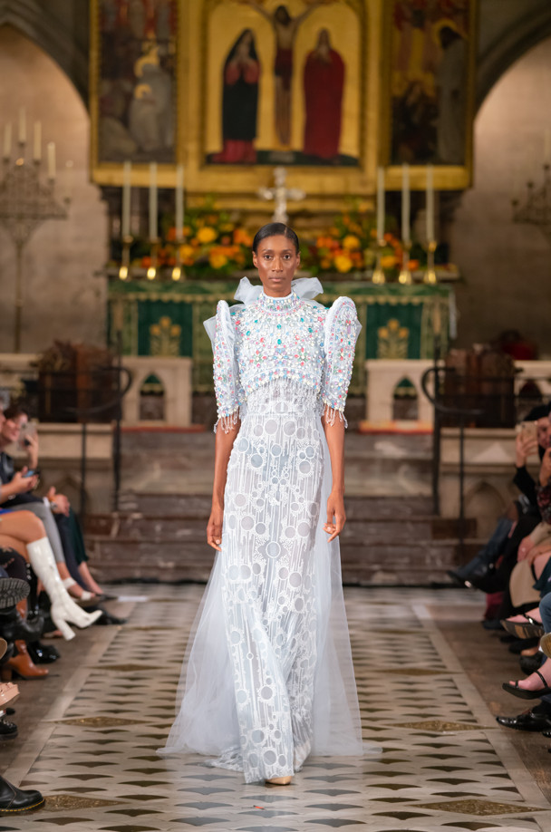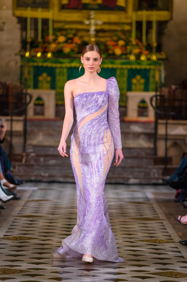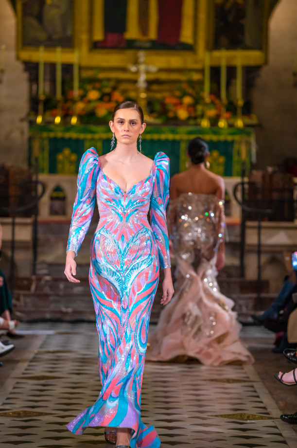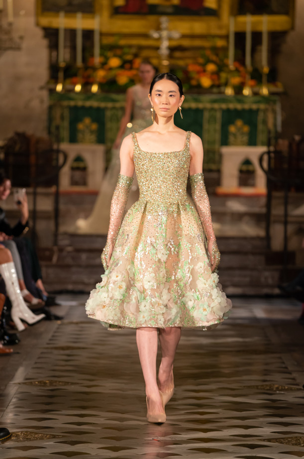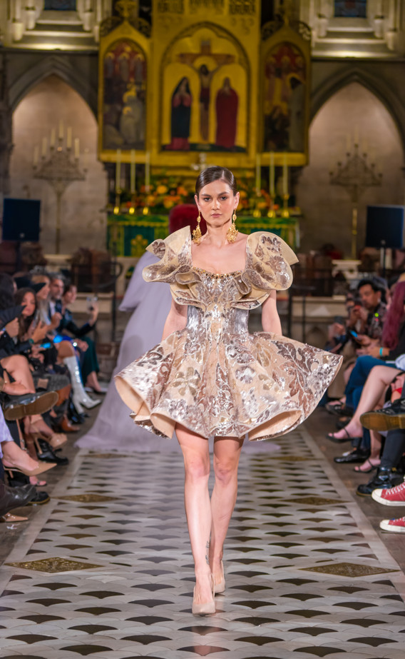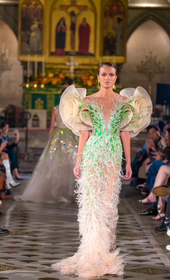 Michael Cinco presented his new collection during Paris Fashion Week at the American Cathedral in Paris, one of the most beautiful Gothic Cathedrals with colorfull stained-glass windows transformed in a perfect fashion venue for a such beautifull fashion show