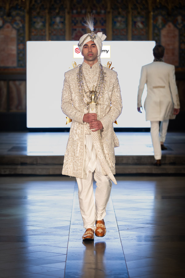 Rasook by Manit Pal Singh presented “Heritage in Harmony: A Celebration of Cultural Diversity in Wedding Wear,” showcasing men’s wedding attire influenced by Hindu, Sikh, Muslim, and Christian rituals. The collection combined luxurious fabrics like silk and velvet with intricate embroidery and a rich colour palette, blending traditional motifs with modern cuts for a stylish interpretation of wedding traditions. Manit graduated in Textile Design from Pearl Academy.
