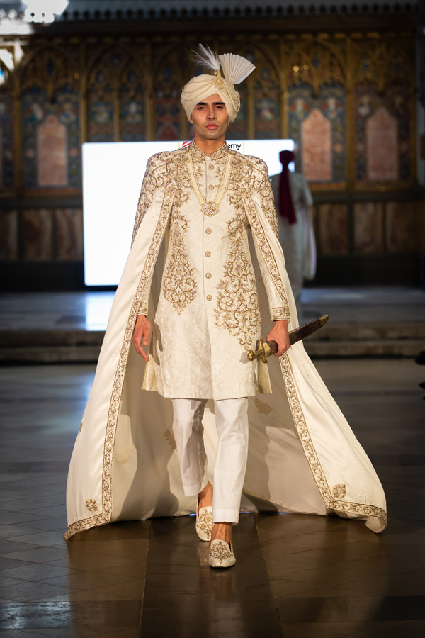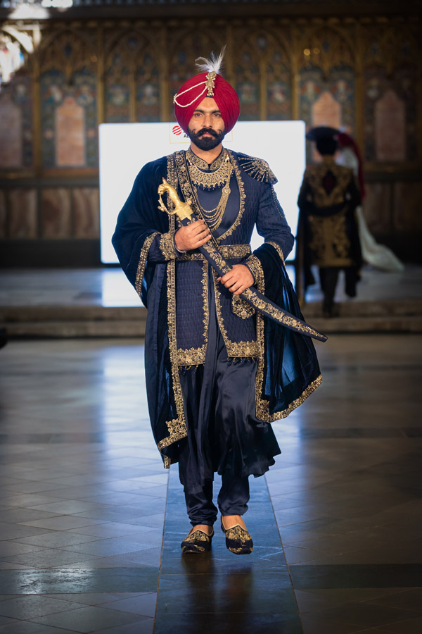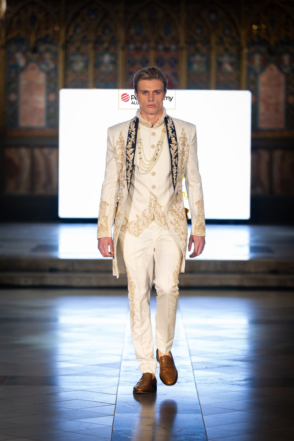Rasook by Manit Pal Singh presented “Heritage in Harmony: A Celebration of Cultural Diversity in Wedding Wear,” showcasing men’s wedding attire influenced by Hindu, Sikh, Muslim, and Christian rituals. The collection combined luxurious fabrics like silk and velvet with intricate embroidery and a rich colour palette, blending traditional motifs with modern cuts for a stylish interpretation of wedding traditions. Manit graduated in Textile Design from Pearl Academy.