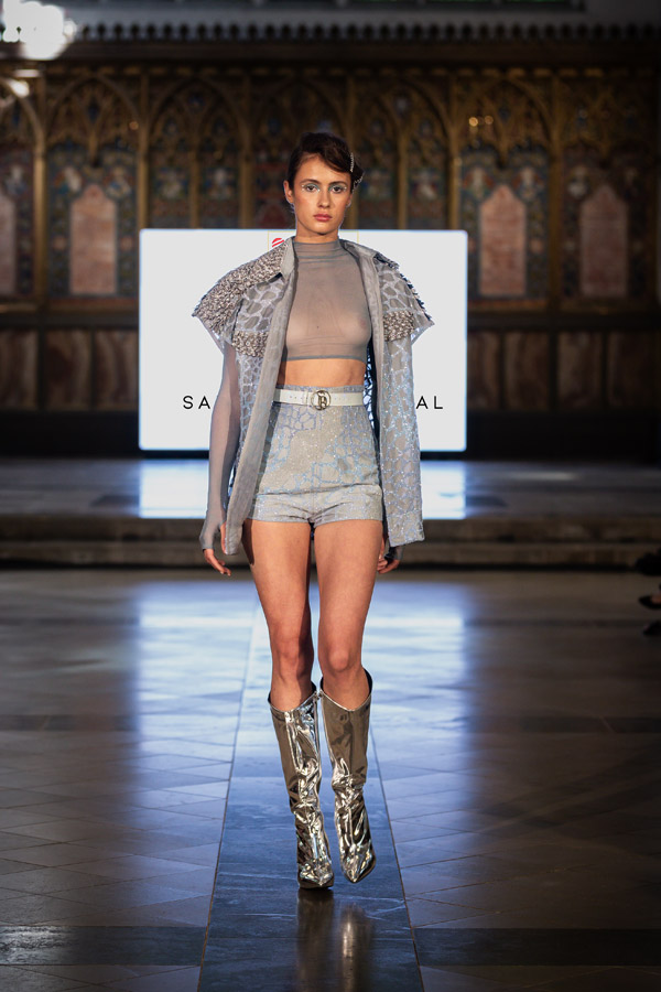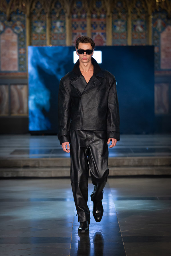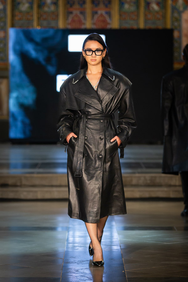 Shubh Goyal, Creative Director of FIERCE LONDON, a graduate of Fashion Luxury Brand Management from Pearl Academy presented the “Fierce Ascendancy” collection, an all-black line that combined luxury with the edgy spirit of streetwear. Crafted from fine leather, it included structured jackets, tailored trousers, and sculpted bodysuits, emphasising bold silhouettes and intricate details. This collection redefined streetwear with a focus on power, confidence, and unapologetic self-expression.