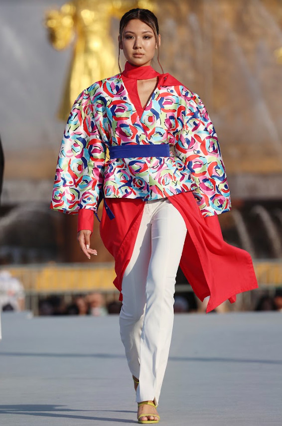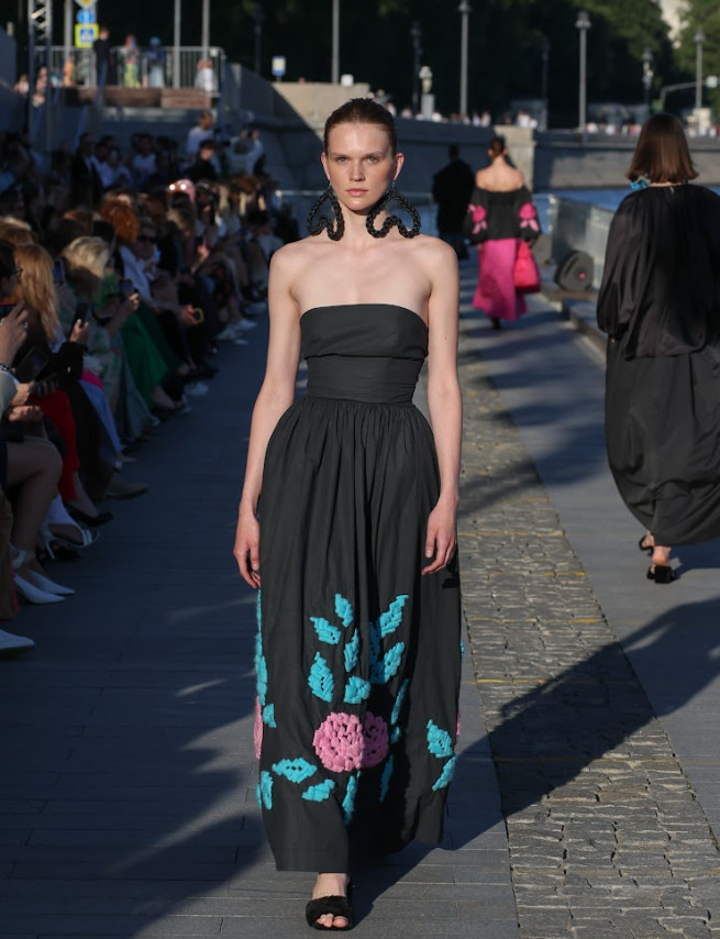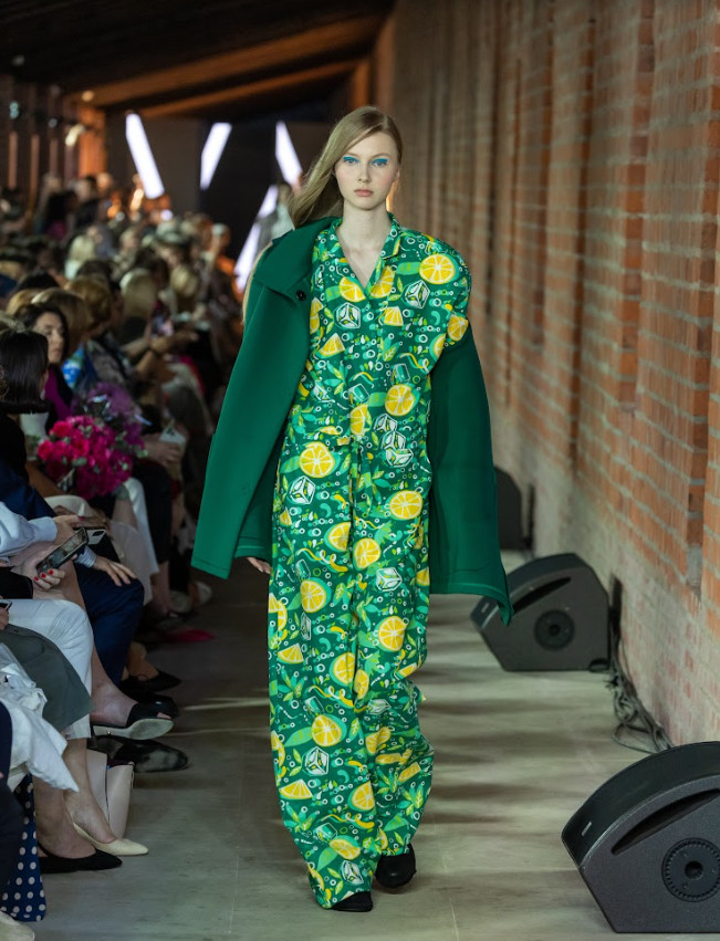 The new collection by Victoria Andreyanova was designed in collaboration with Shuysky Chintz, a major cotton producer with 200 years of history. Loose silhouettes, vivid prints, bright colors with touches of clear white – these were the keynotes of the new collection. Models walked down the catwalk demonstrating maxi dresses and oversize shirts, suits with belted jackets and widelegs, as well as short and long overcoats.