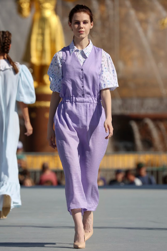 One of the top objectives for the brand is to raise awareness about reasonable consumption and slow fashion guidelines. The brand doesn’t make new collections as some system – they just add some models to their existing range. Their garments are a blend of references to all sides of the world, as well as Renaissance and the 70s. This is how designer Xenia Kudryashova feels – she believes creation can’t stay within boundaries of a single topic. Despite many kinds of textures, shapes, and colors, the show had a common denominator – comfortable feminine looks for a modern woman. Sweatshirts with highlighted bust line, one-suiters with contrasting waist, quilted dresses and corsets – all of them were loose and yet feminine.