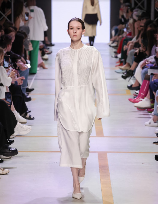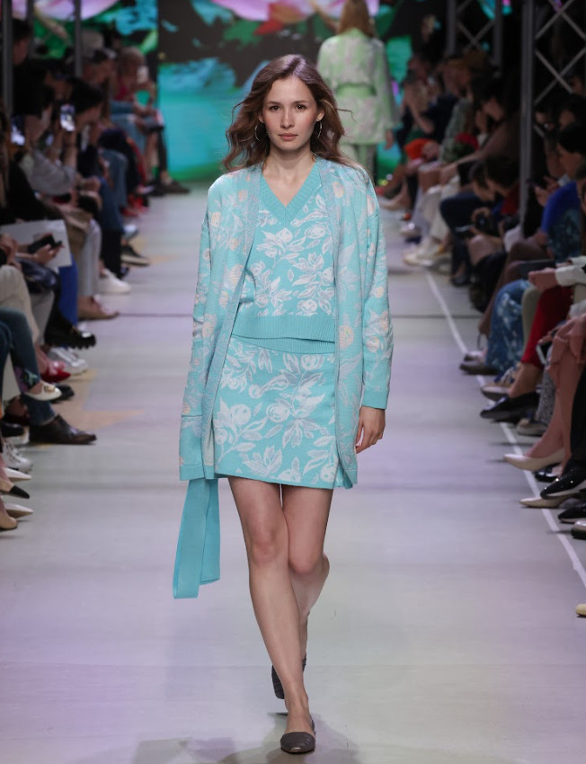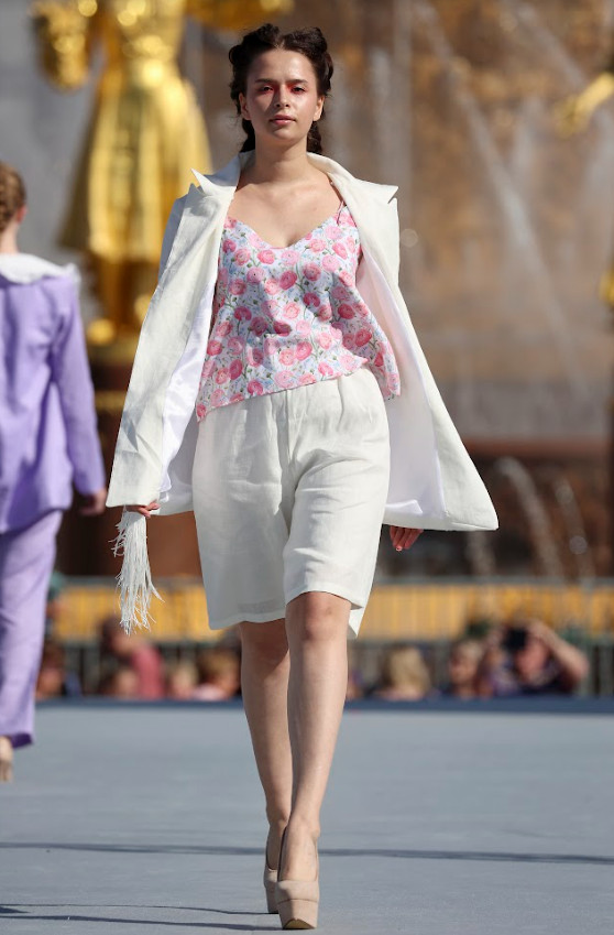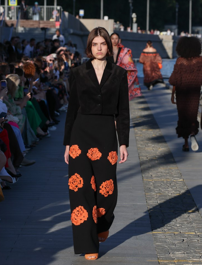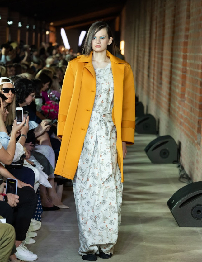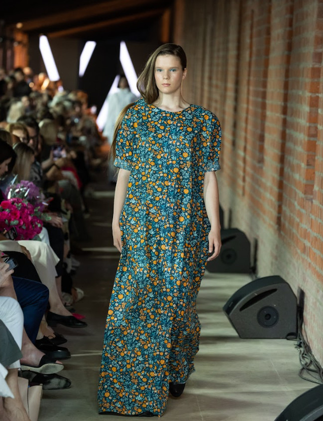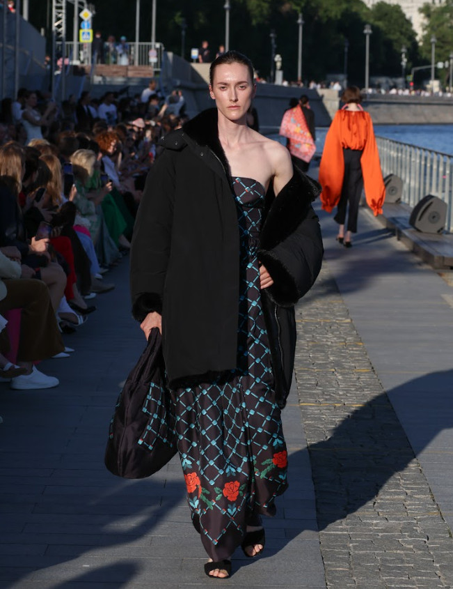 The new collection by Victoria Andreyanova was designed in collaboration with Shuysky Chintz, a major cotton producer with 200 years of history. Loose silhouettes, vivid prints, bright colors with touches of clear white – these were the keynotes of the new collection. Models walked down the catwalk demonstrating maxi dresses and oversize shirts, suits with belted jackets and widelegs, as well as short and long overcoats.